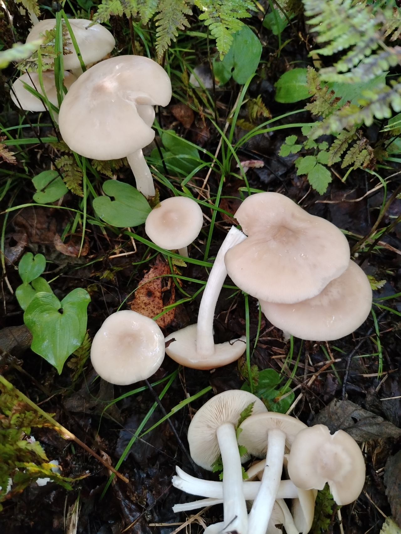 Описание гриба: Сахалин. Август. Очень надеюсь, что это энтолома садовая, но боюсь ошибиться. Шляпка светло-бежевая, слегка розоватая у малышей. Пластинки светло-розовые, а у тех, что постарше бежевые и сероватые. Ножка слегка скрученная, на конце утолщение. При срезе расслаивается, но не у всех. Видны продольные полоски. Плотная. На шляпке бугорок с более тёмным оттенком. Запах назвать не могу.