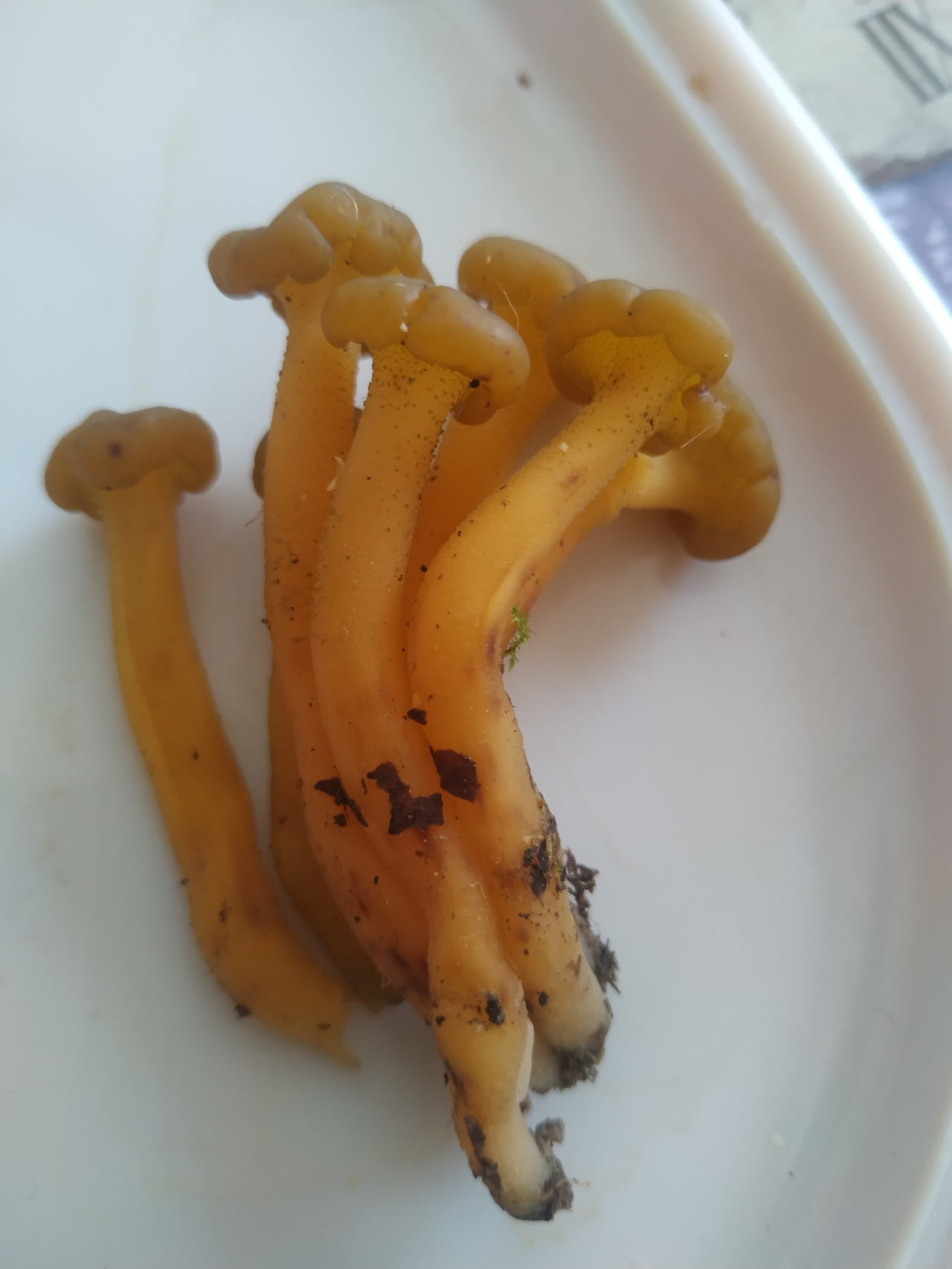 Описание гриба: Тверская область, старый ельник. Мелкие полупрозрачные грибы.