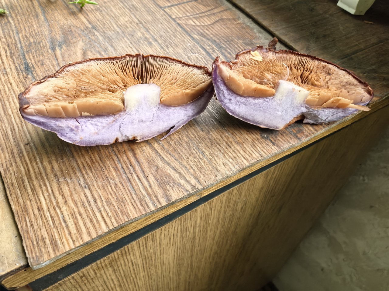 Описание гриба: Найдены в елово-сосновом хвойнике, крепкие грибы, на срезе фиолетового оттенка.