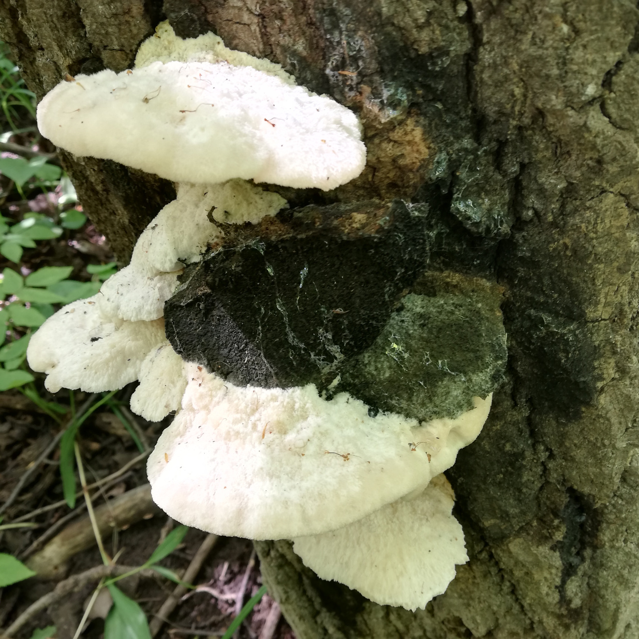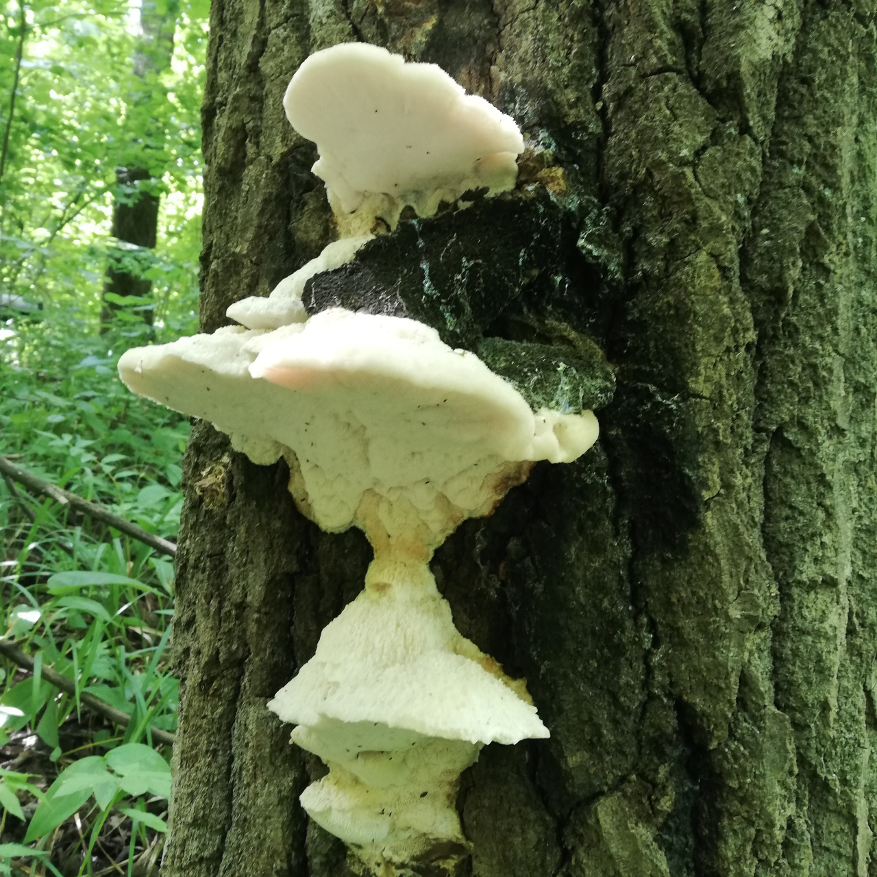 Описание гриба: Какой-то вид трутовика? Гриб сфотографировал 06.07.2025 в Красноярском районе Самарской области (около п. Новосемейкино), в лиственном лесу (дубы, тополя и т.п.).