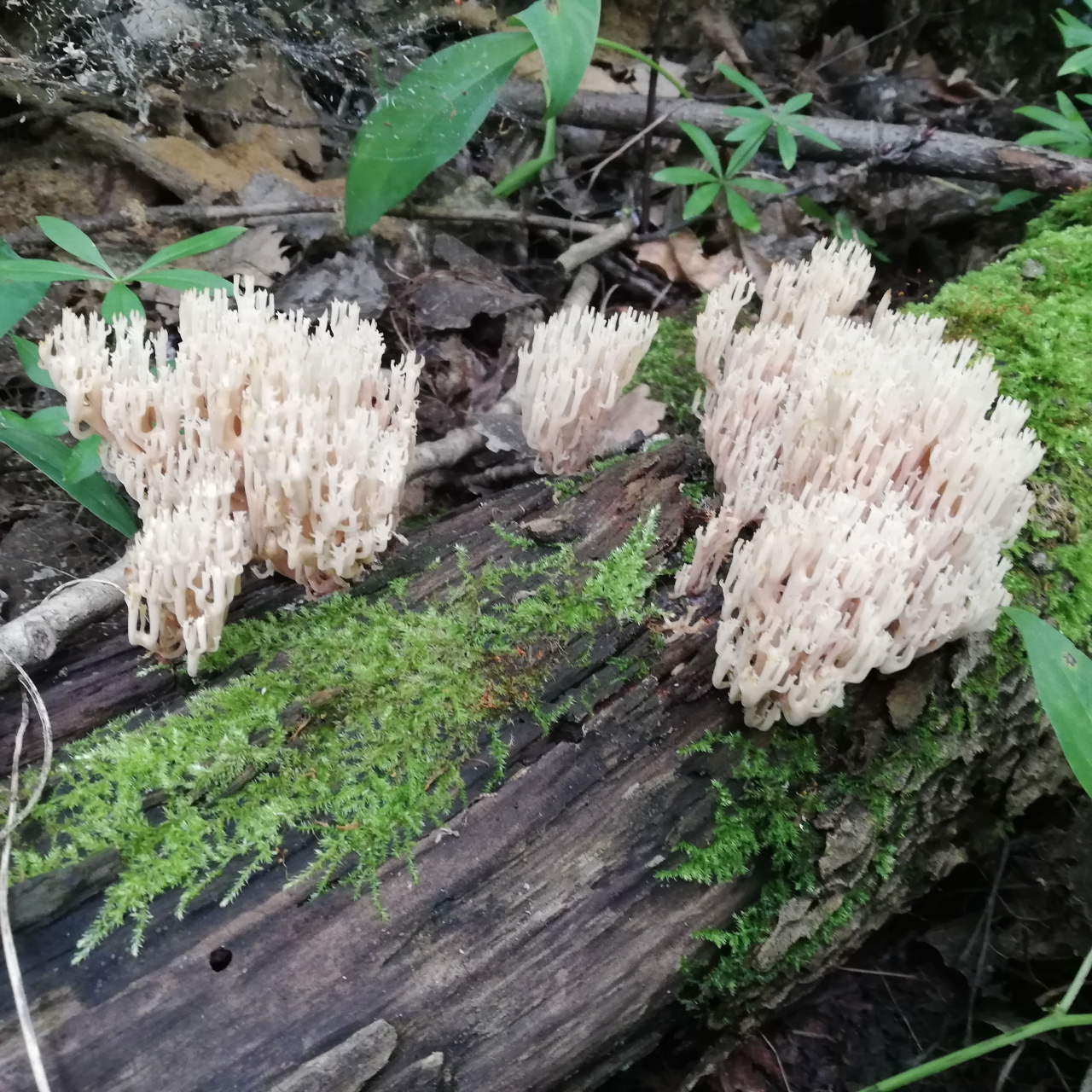 Описание гриба: Ежовик коралловидный? Грибы сфотографировал 06.07.2025 в Красноярском районе Самарской области (около п. Новосемейкино), в лиственном лесу (дубы, тополя и т.п.).