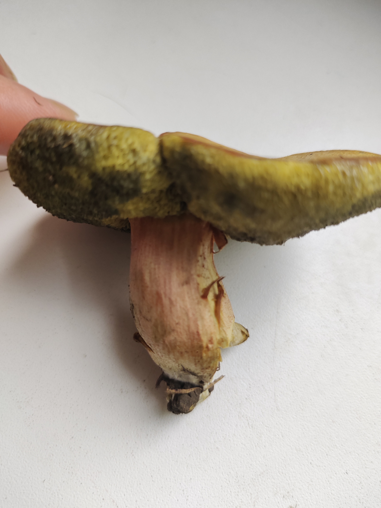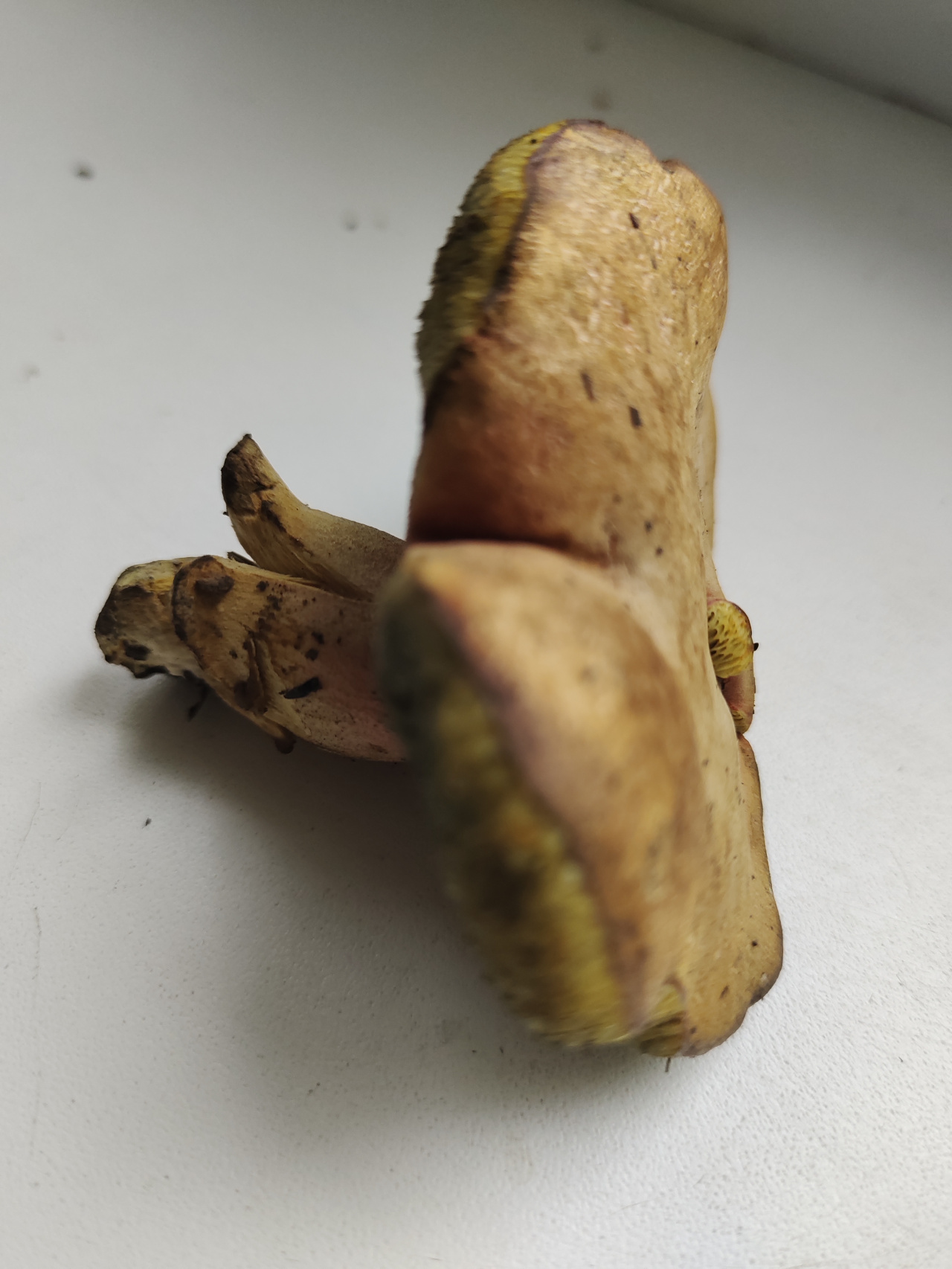 Описание гриба: Шляпка светло-коричнего цвета, мякоть горчичного цвета, на срезе синеет