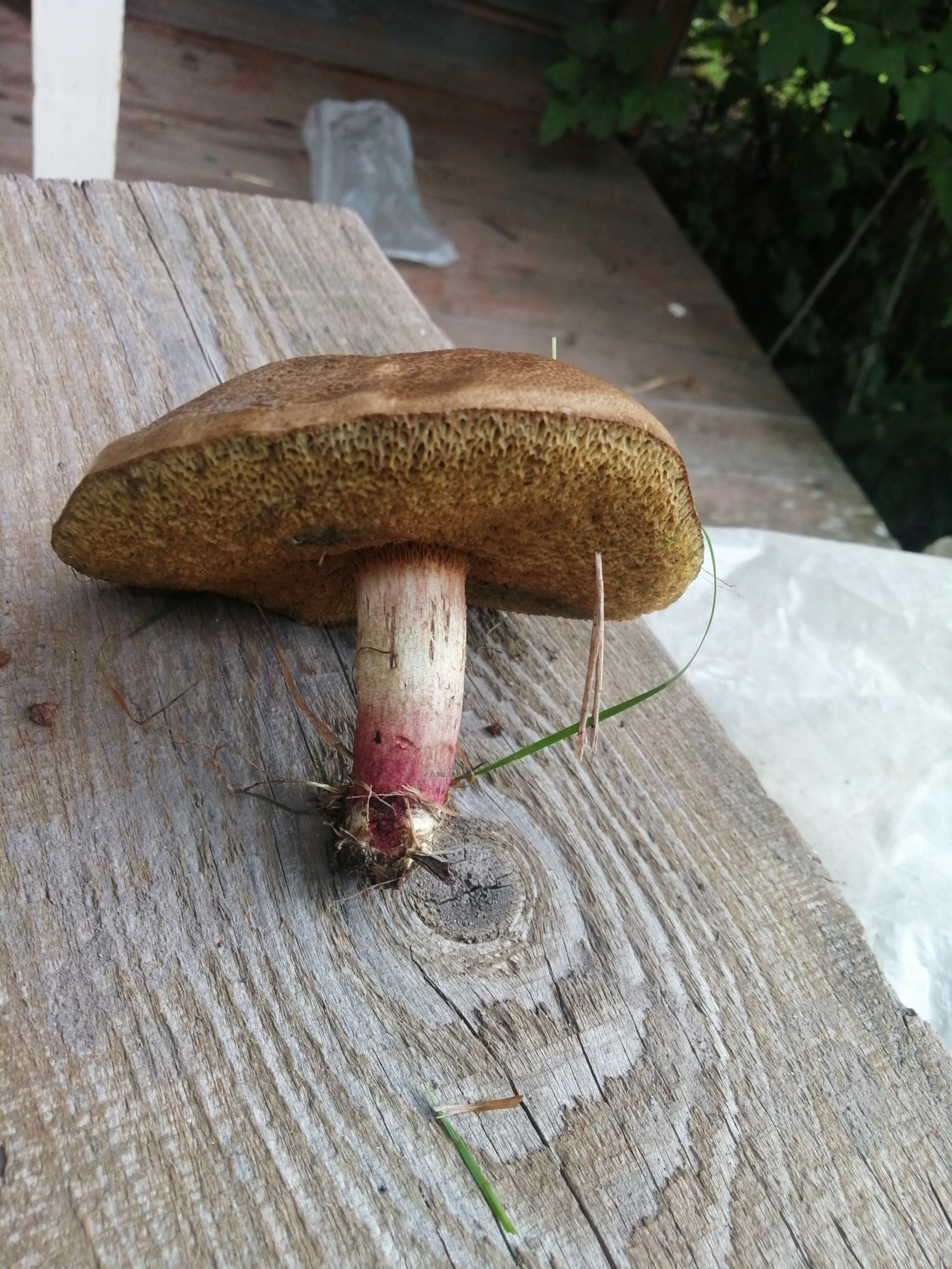 Описание гриба: На садовом участке. Под дубом. У корня ножка красного оттенка. При сломе краснеет.