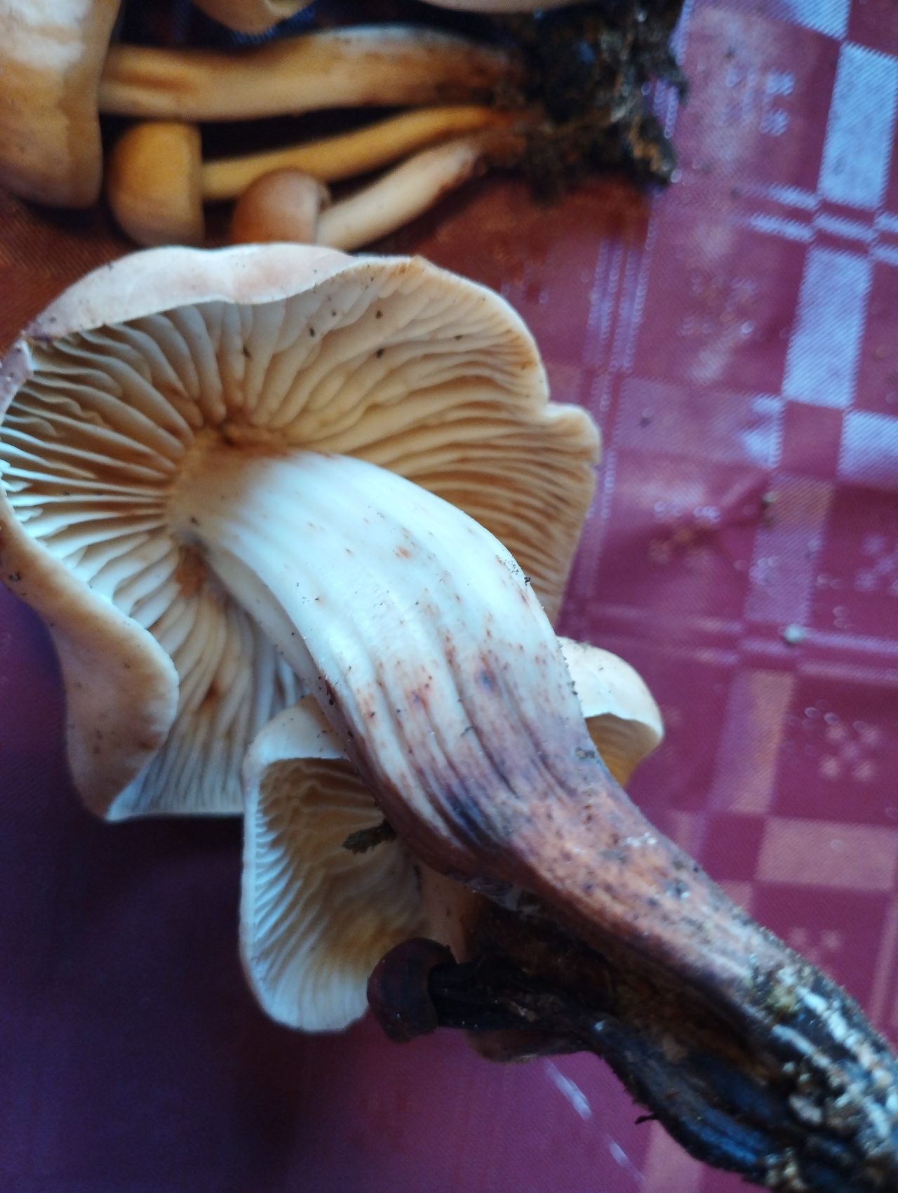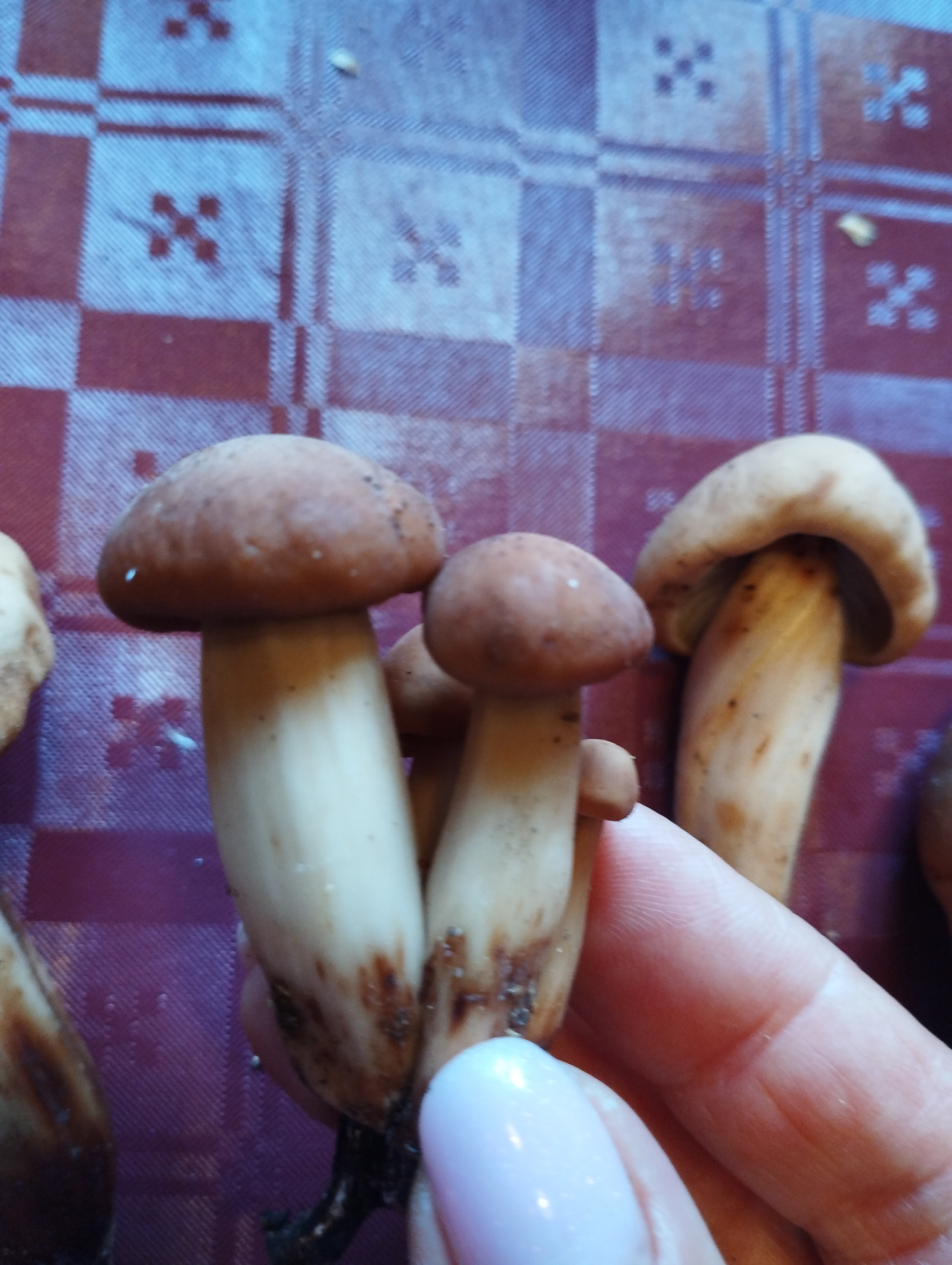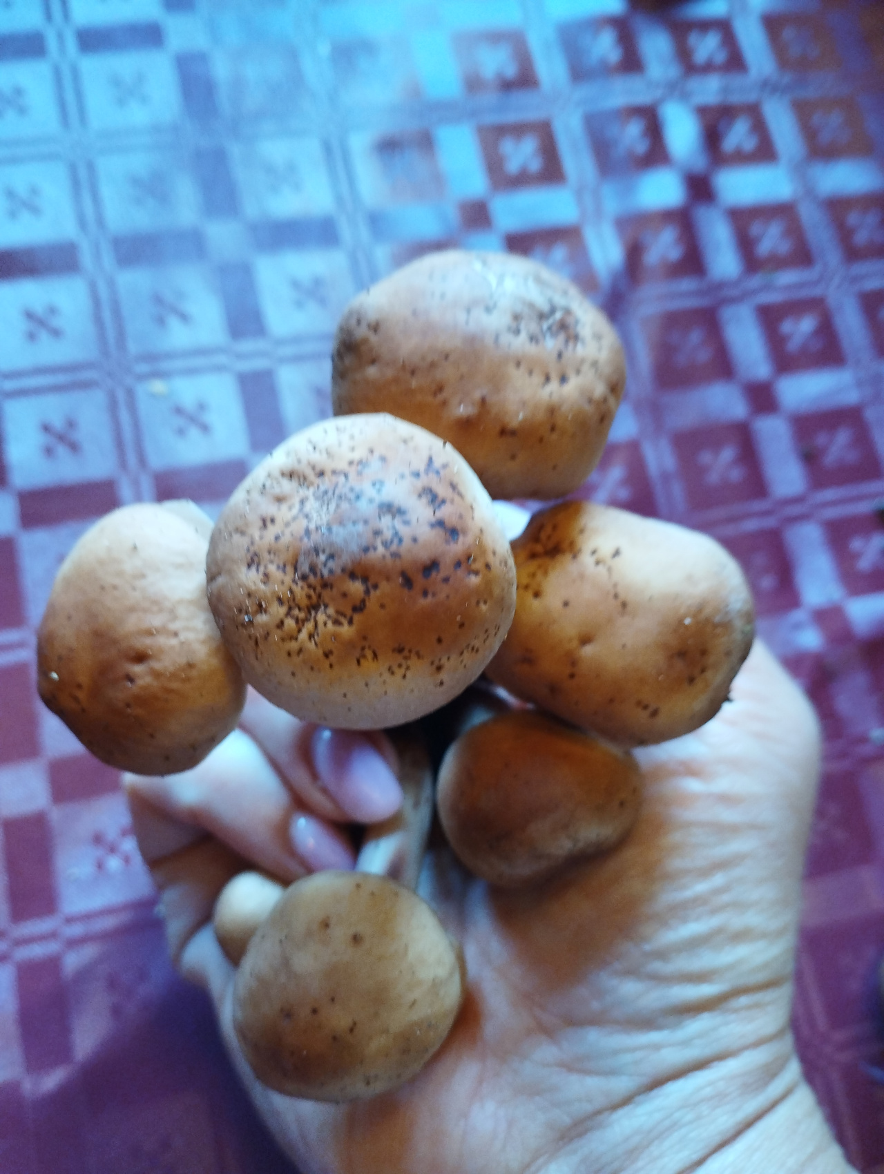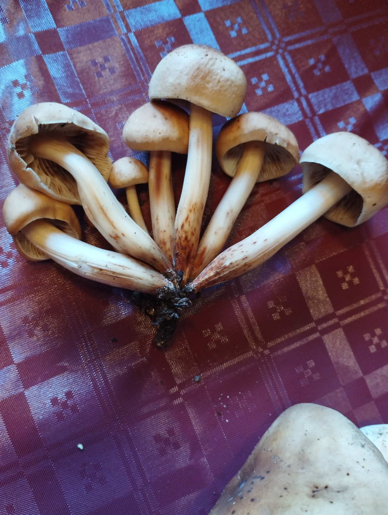 Описание гриба: У подножия дубов, в смешанном лесу во Франции. Светлокоричневый, с более темными пятнышками на шляпке и внизу ножки. Кольца нет. Запах приятный, очень легкий.