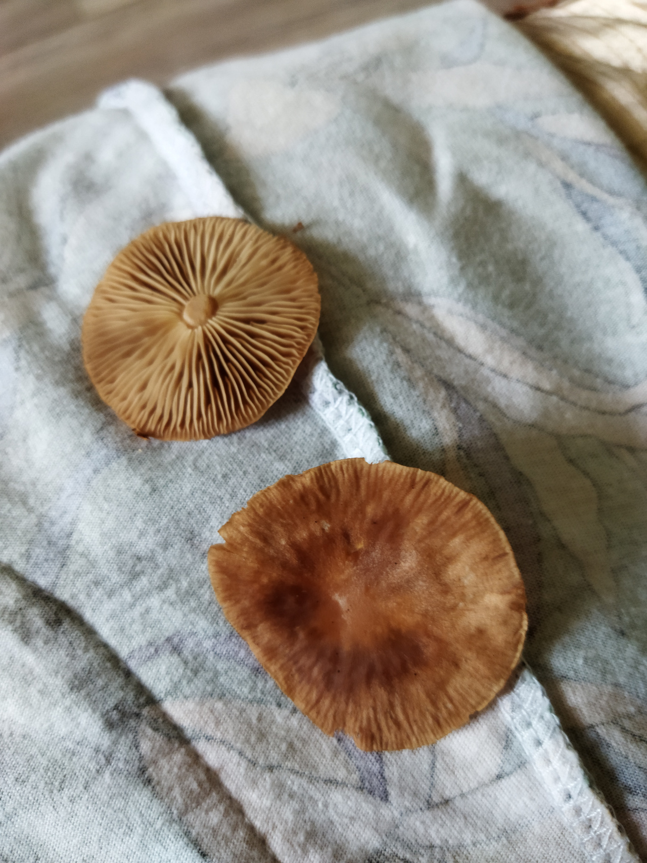 Описание гриба: Смешанный лес, на земле. Запах приятный грибной. Цвет не меняется, пластины коричневые.