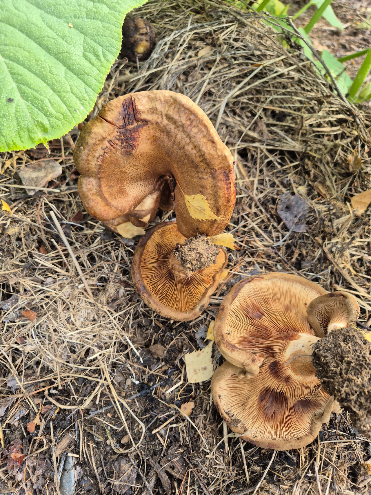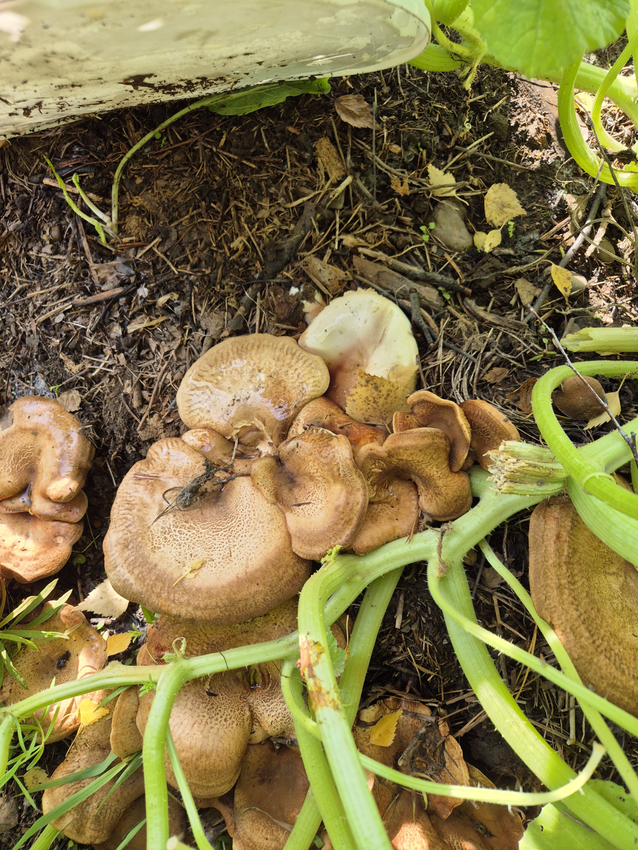 Описание гриба: Запах грибной, на даче, на грядки с кабачками и тыквами, коричневый