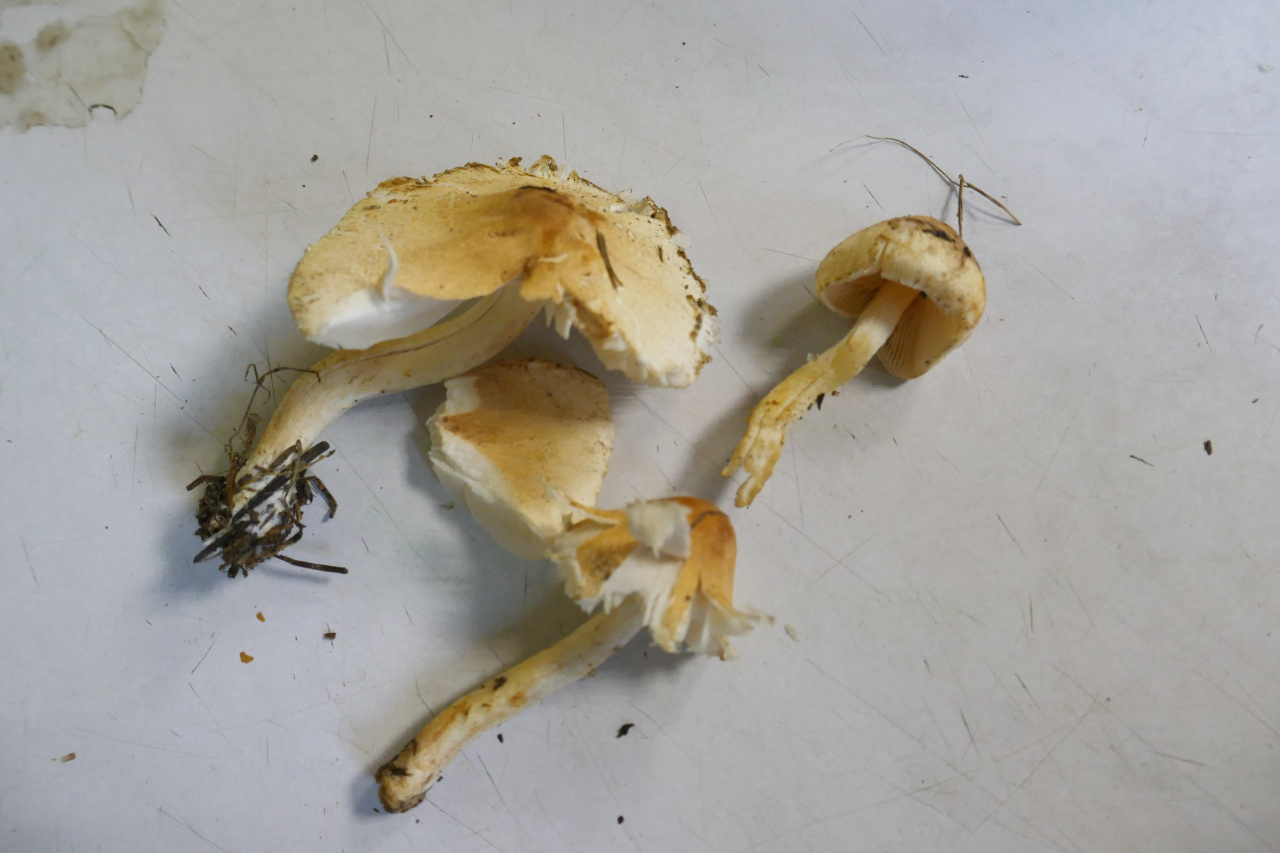 Описание гриба: Недалеко от дома есть маленький лесочек — «елочки». Между улицами в поселке. Там деревьев 25 стоит, в основном елки, есть несколько берез. Дети иногда туда бегают, то шампиньон притащат, то мокруху. Сегодня принесли вот такое. Никак не могу понять что за грибы. Запаха особо выраженного нет.