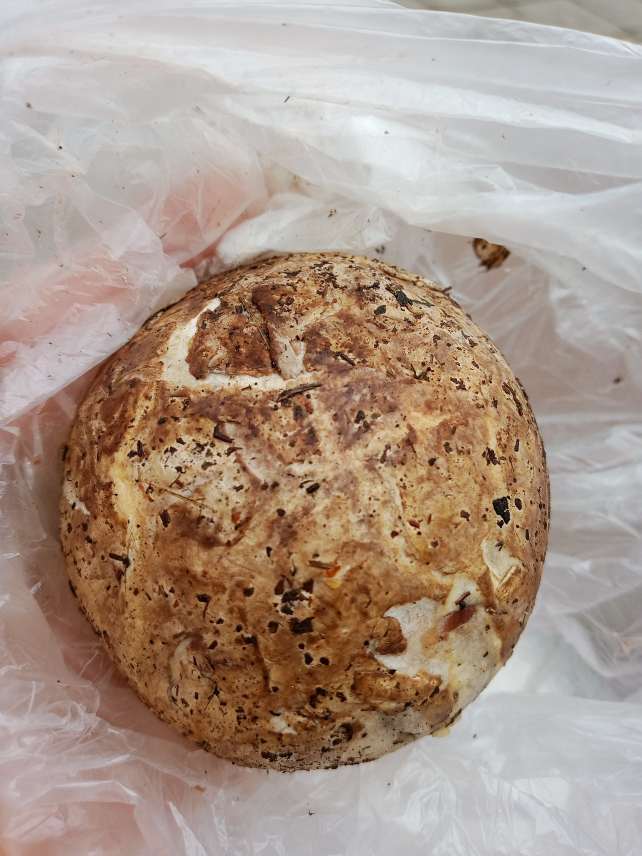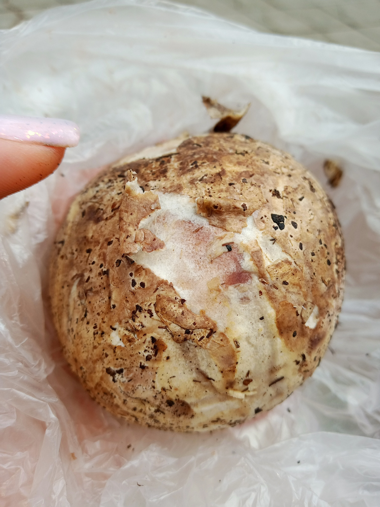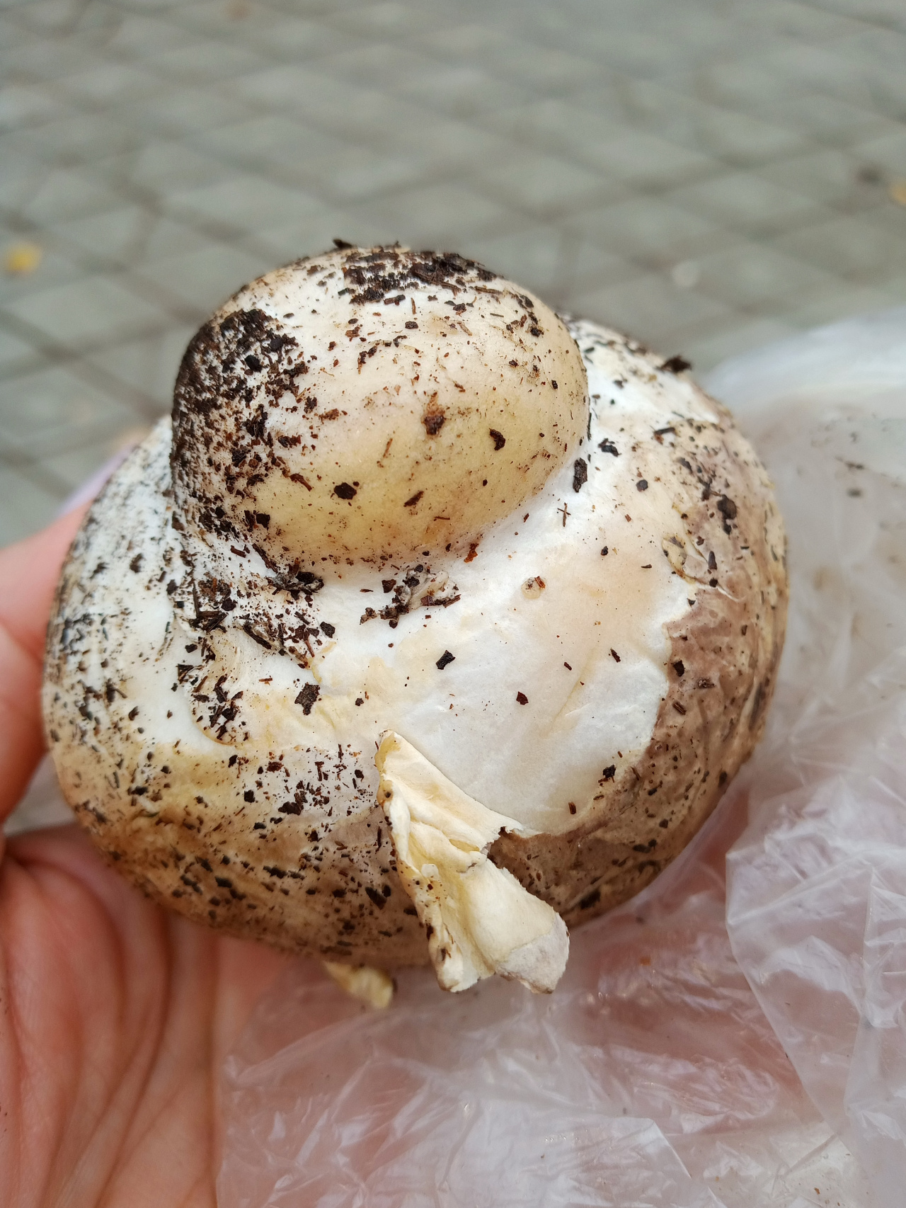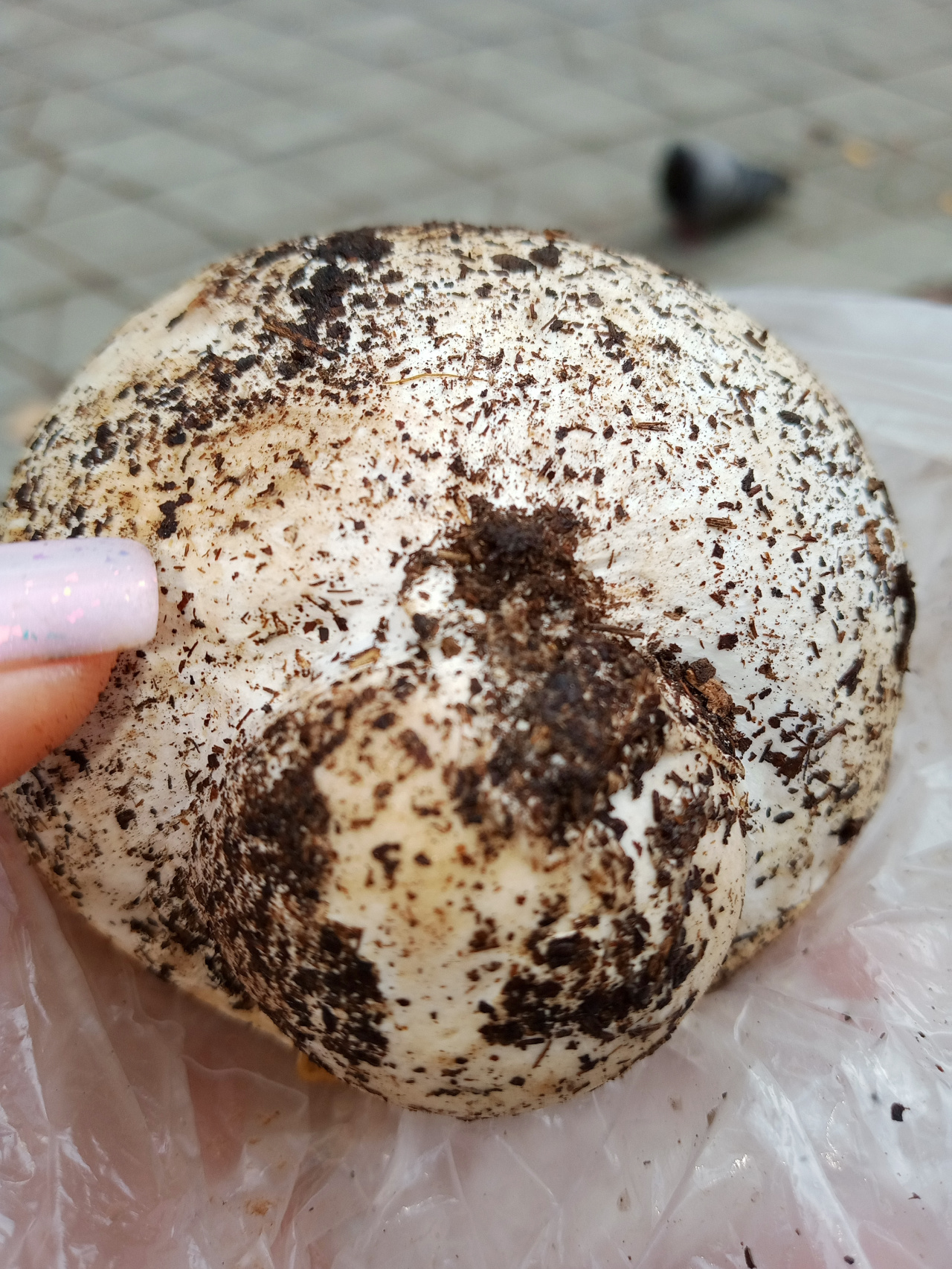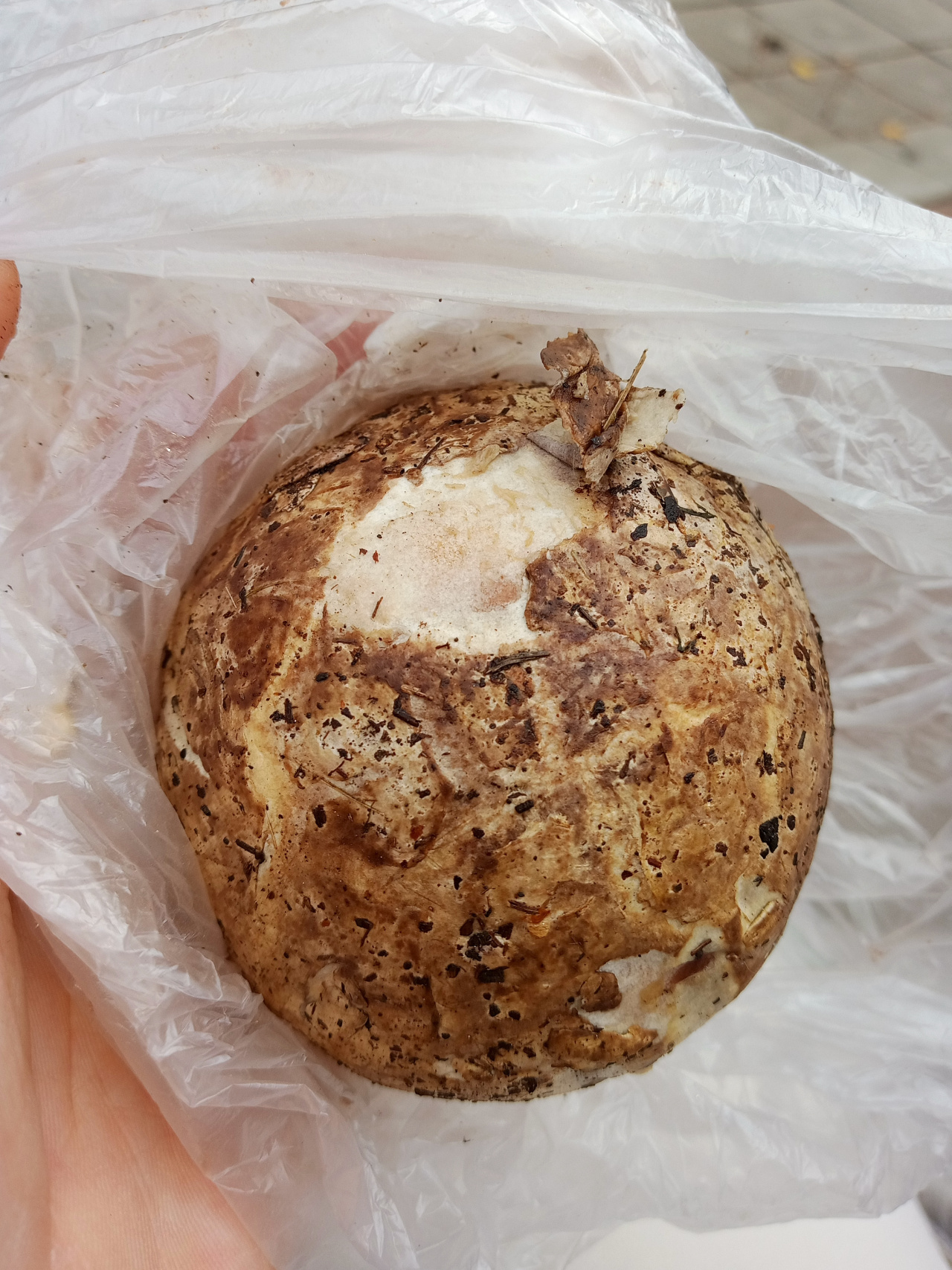 Описание гриба: Городской парк. Деревья разные, под каким нашла, не помню, кажется, клен американский. Возле тропы. Гриб похож на дождевик, кожица сверху отделяется. На яйцо поганки вроде не похож🫣