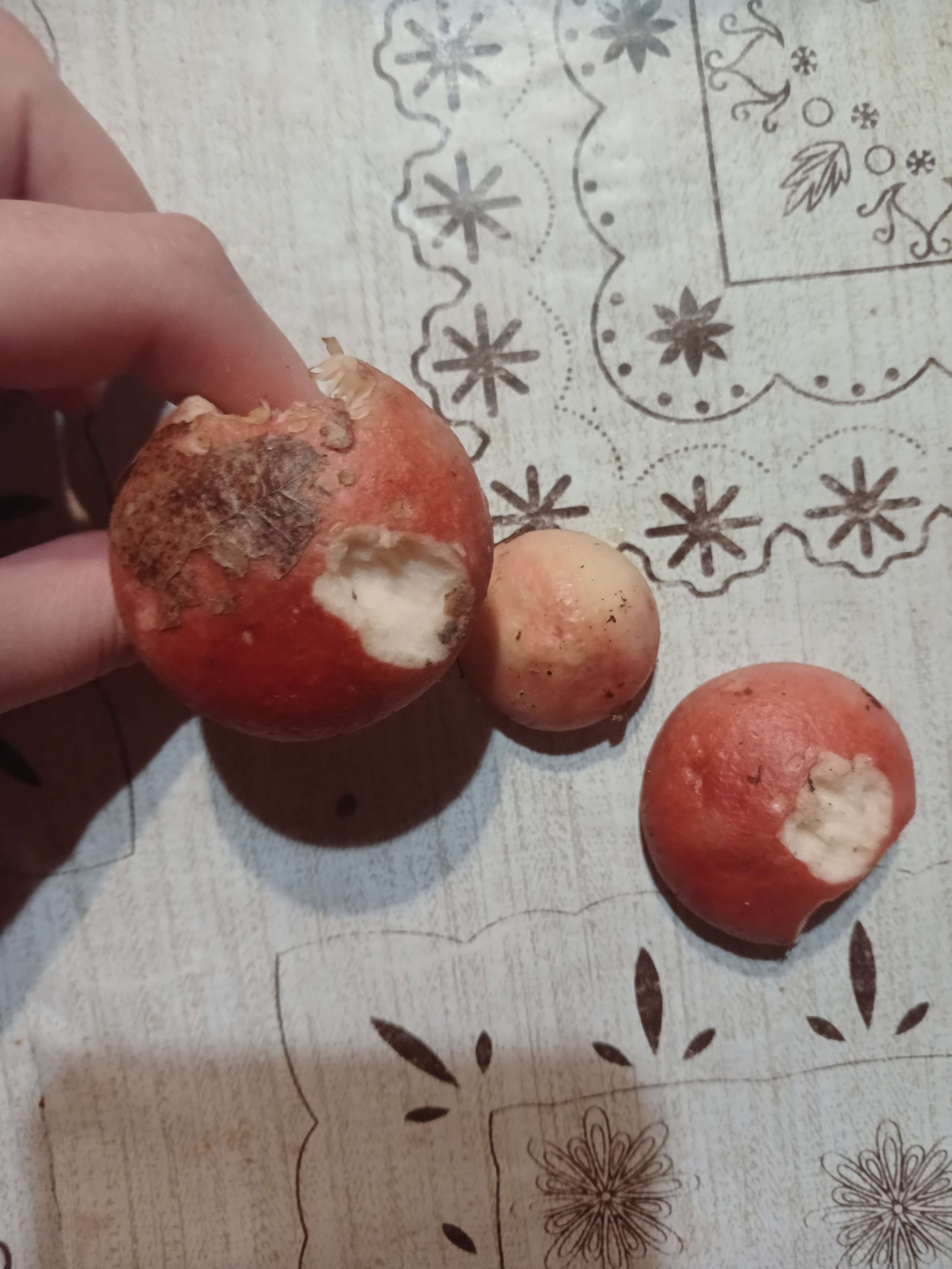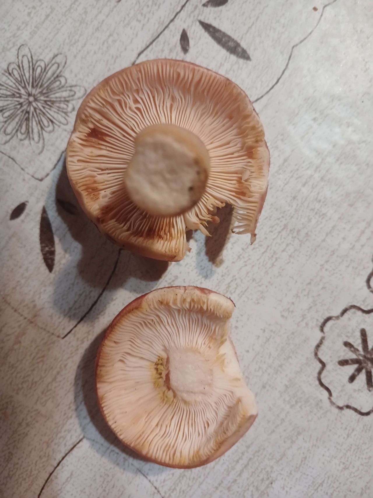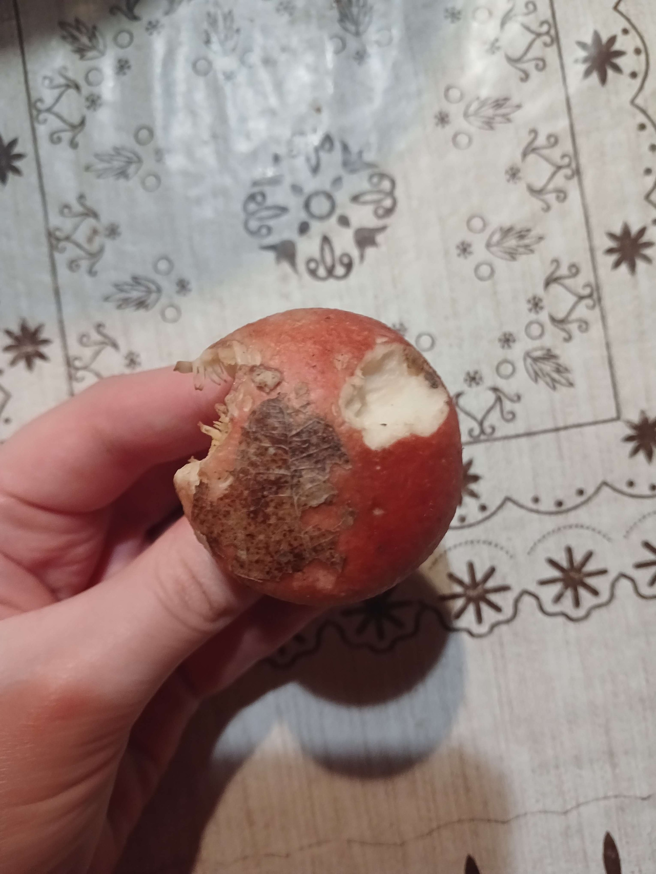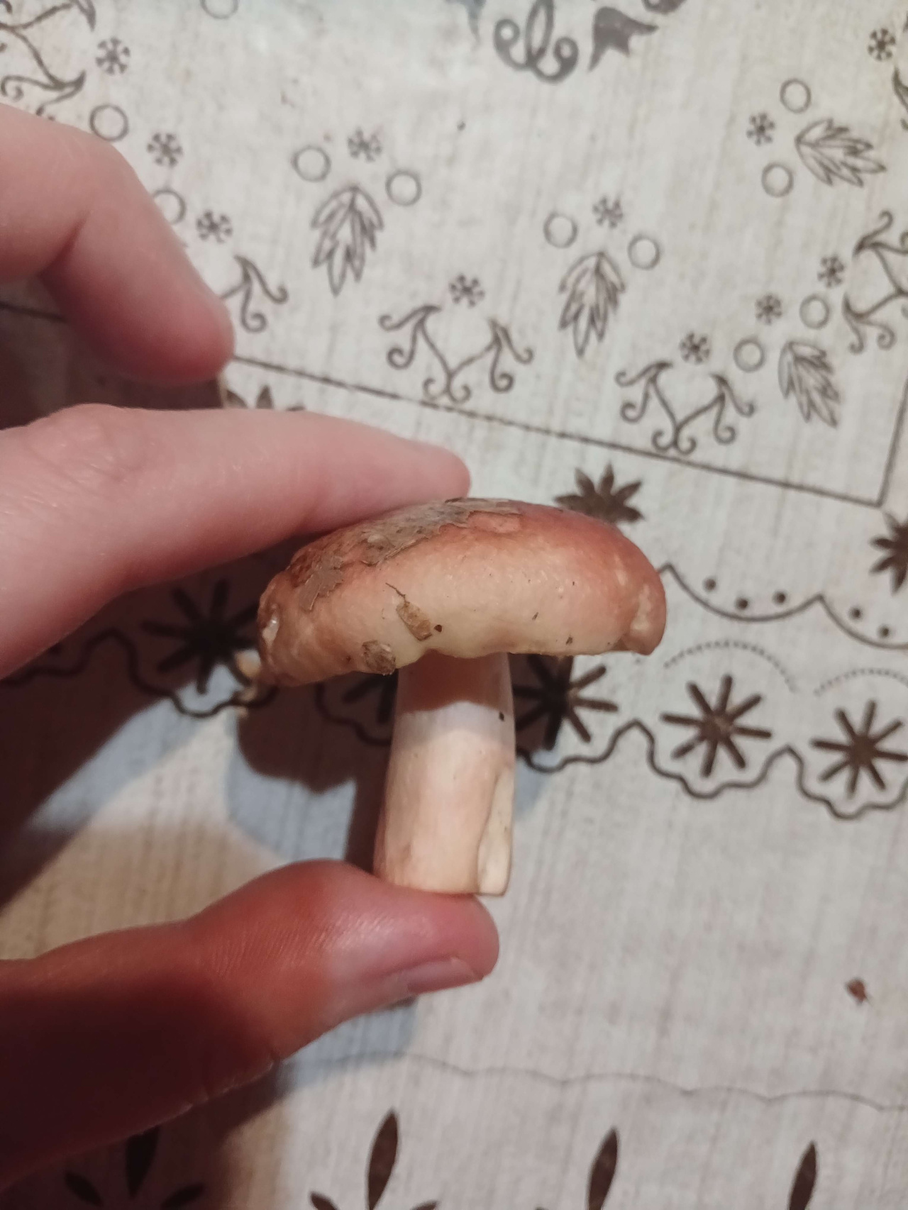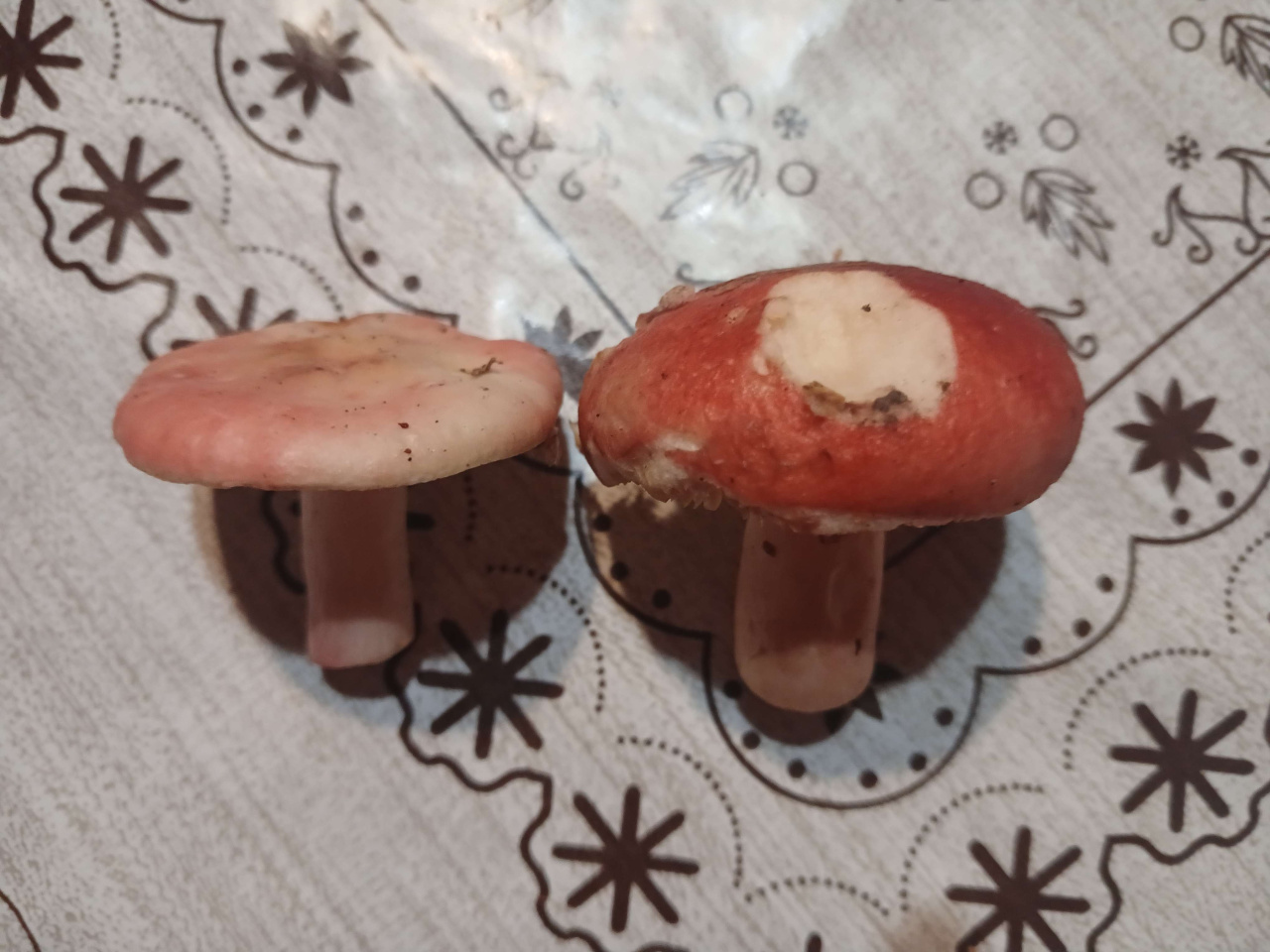 Описание гриба: Здравствуйте! Подскажите. Кажется, какая-то сыроежка? Изображение 5 — сравнение неизвестного гриба (2) с сыроежкой(1), найденной позже. Однако, у (1) вкус не горький