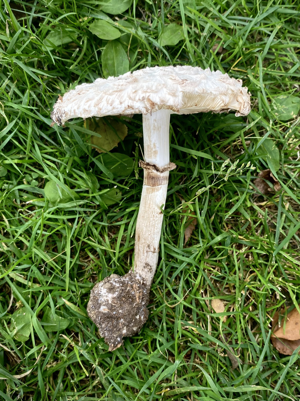 Не Хлорофиллум Оливье. Скорее Зонтик краснеющий. Однако смущает одинарное кольцо. Сравните с Хлорофиллумом темно-бурым. Хотя он растет в более западных регионах, не в районе Мочквы.