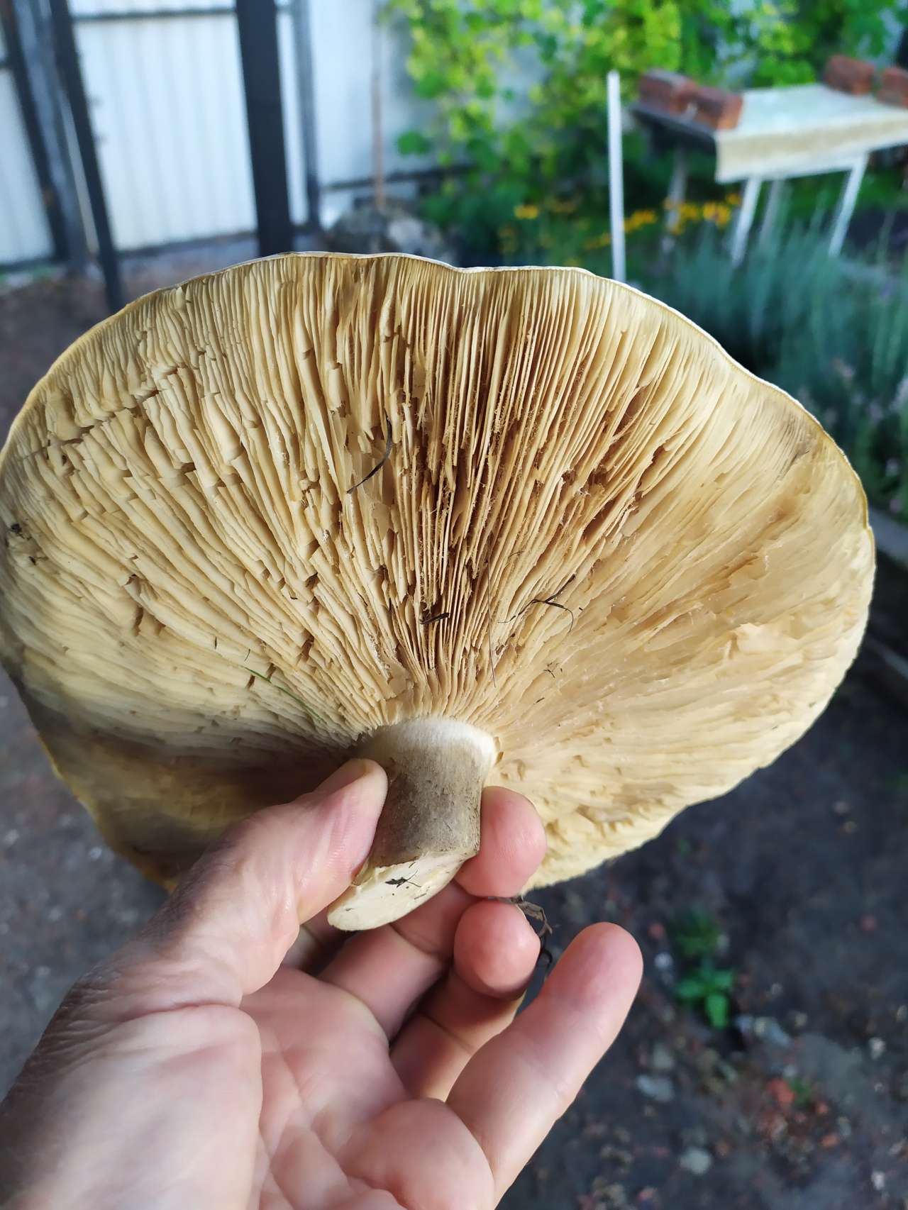Описание гриба: Шляпка сверху сухая, рос на поле, запах резковатый, не очень приятный.