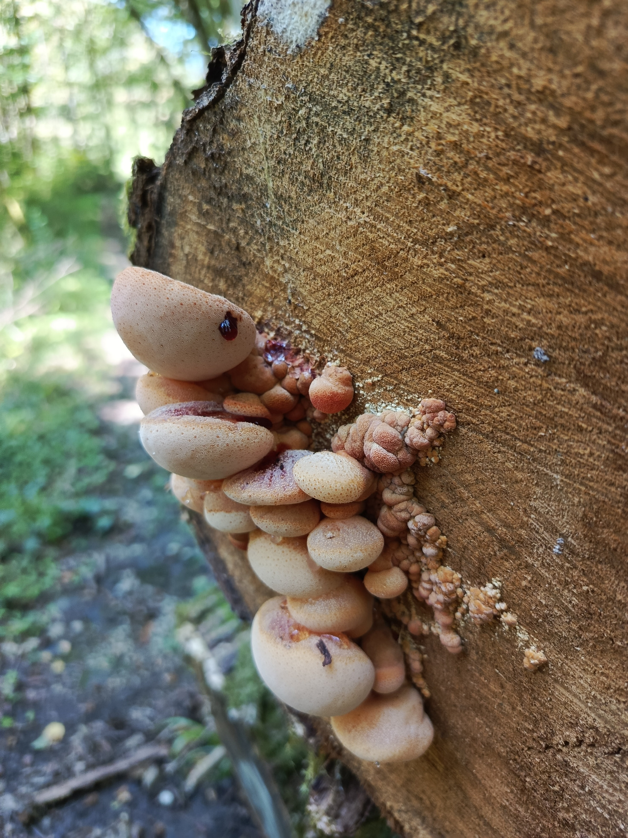 Описание гриба: На спиле дерева, запах приятный срез немного краснеет в верхней части как желе