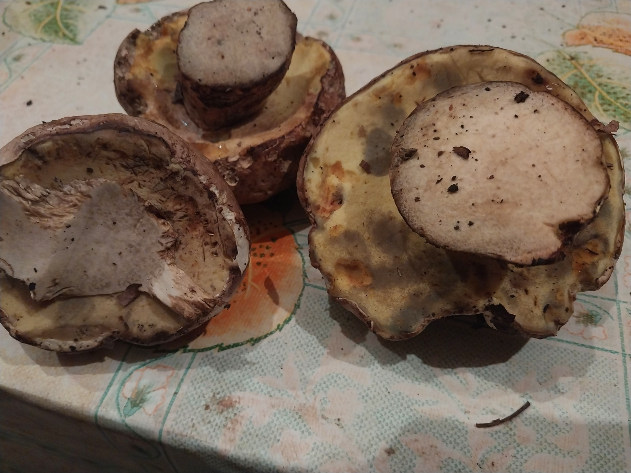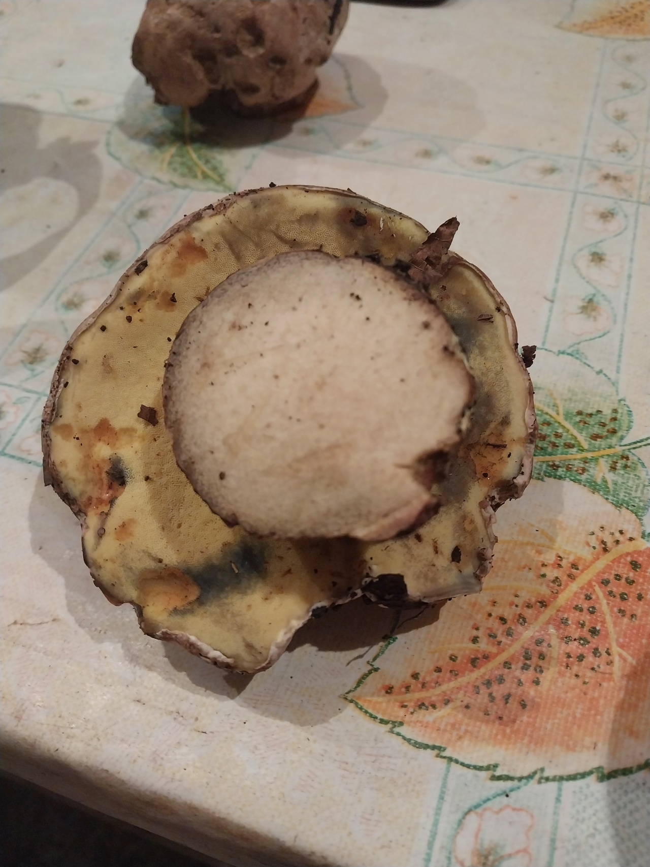 Описание гриба: Смешенный лес, при надавливании синеет.