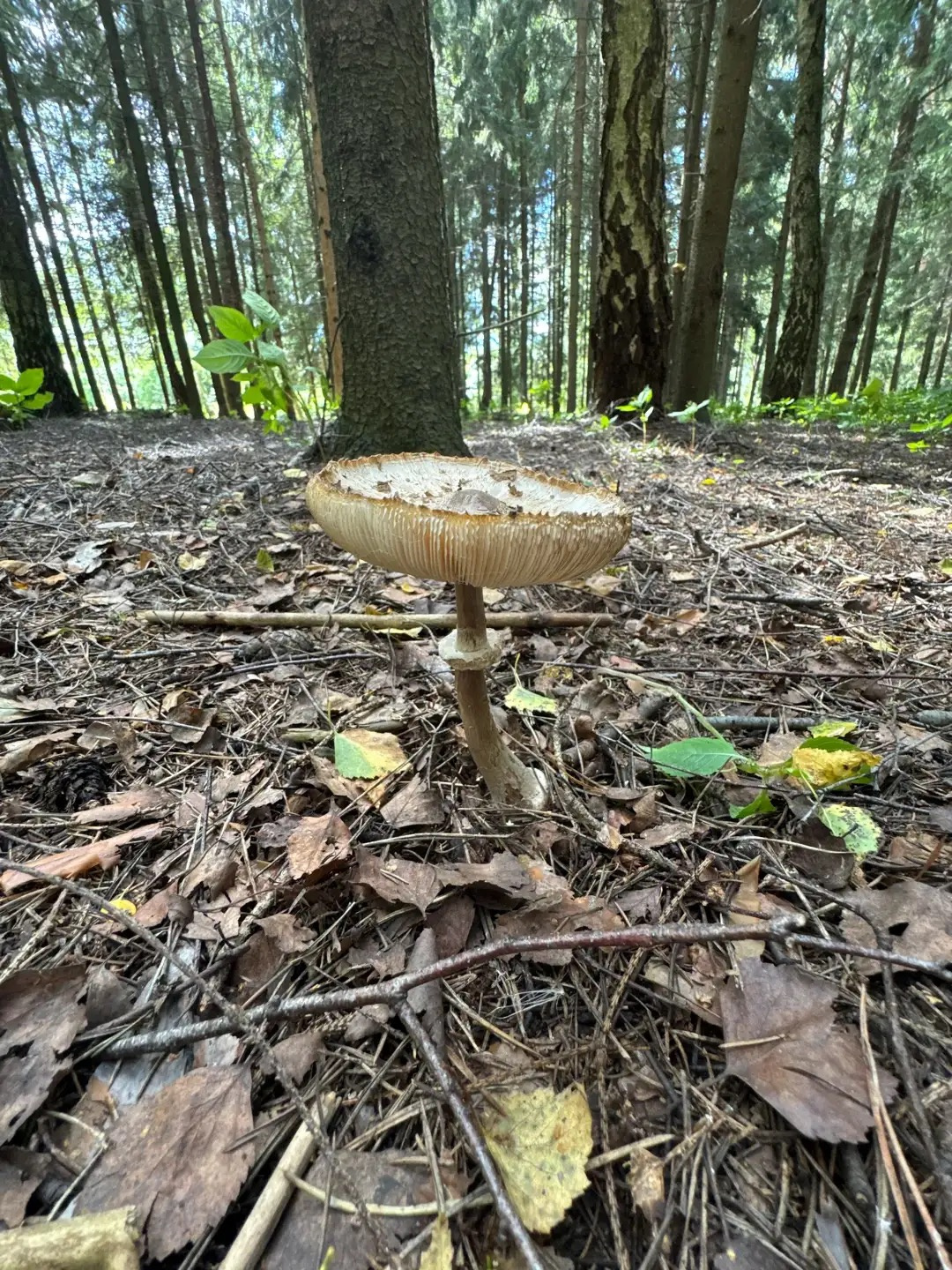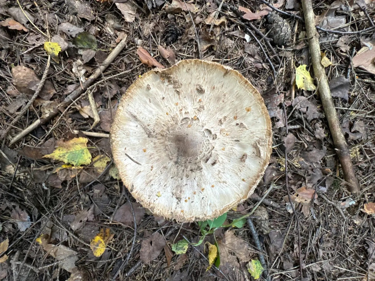 Описание гриба: Помогите пожалуйста определиться с видом зонтика) МО, смешанный лес. Мякоть я его не жмякала, про изменение цвета не могу сказать.
