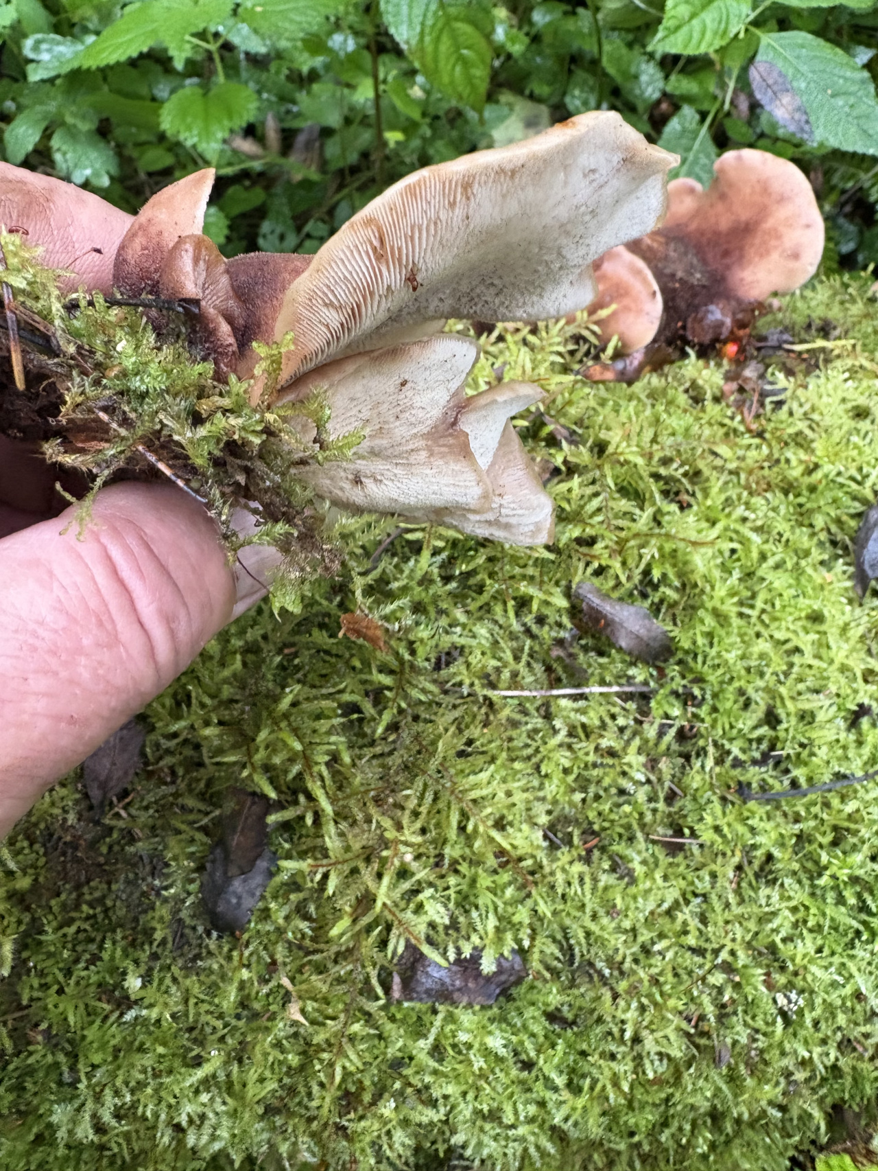 Описание гриба: Нашел в лесу на прваленном дереве их довольно много растут почти как опята