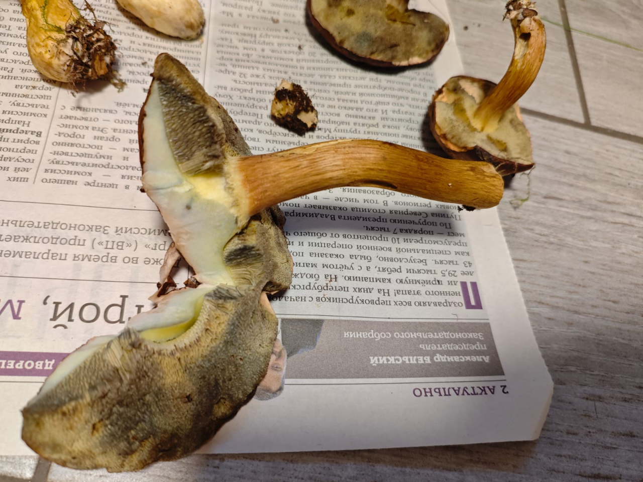 Описание гриба: На разрезе шляпка внутри синеет, ножка цвет не меняет. Место сбора Ленинградская обл.