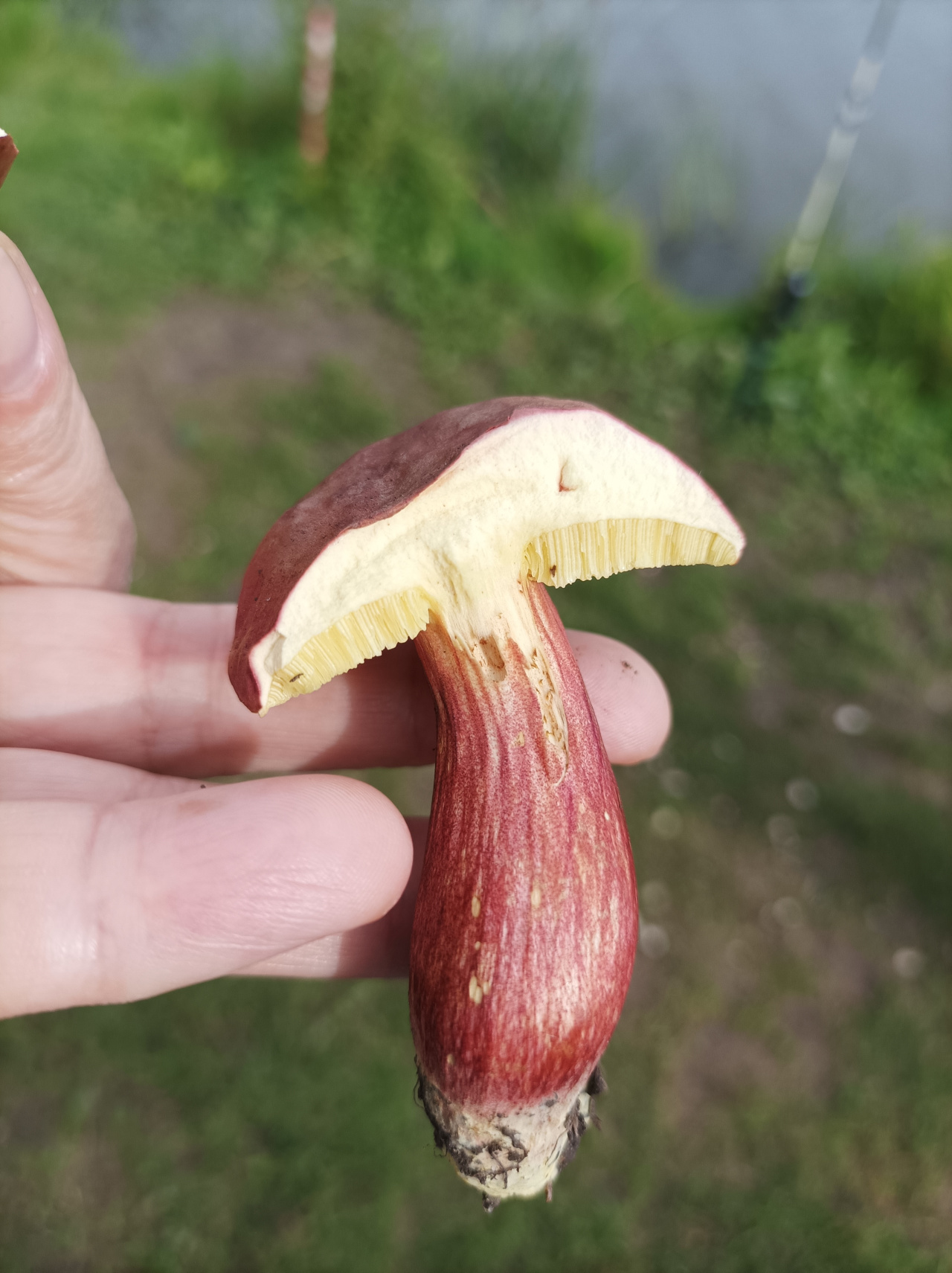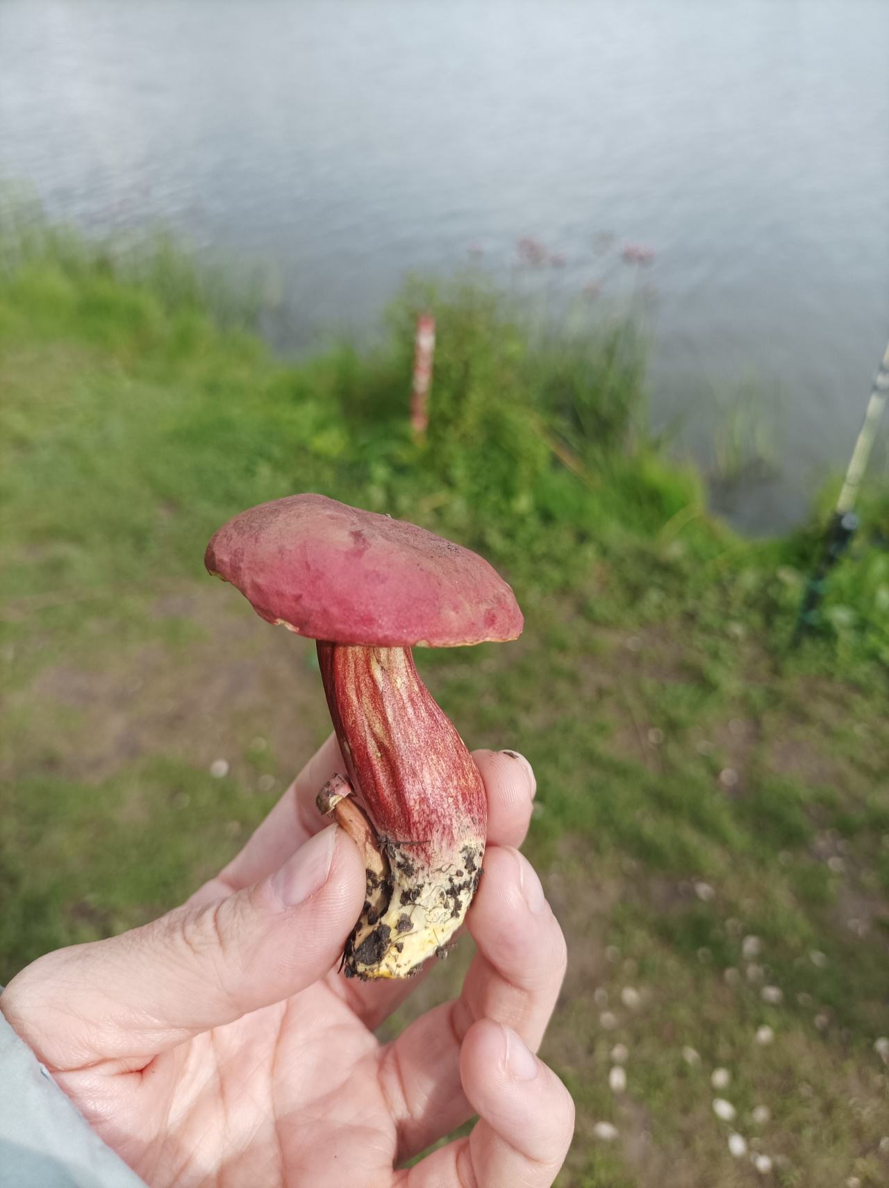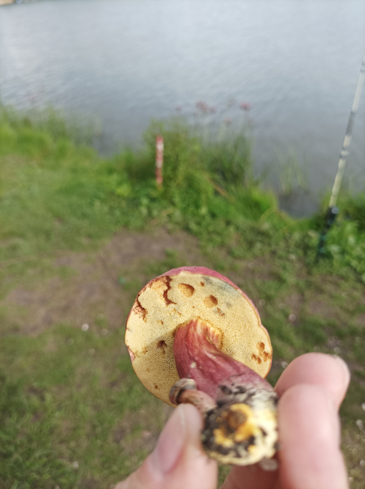 Описание гриба: Шляпка и ножка красно-коричневые. Гименофор жёлтый. На берегу пруда среди дубов, осин и берёз. Между Рязанью и Тулой.