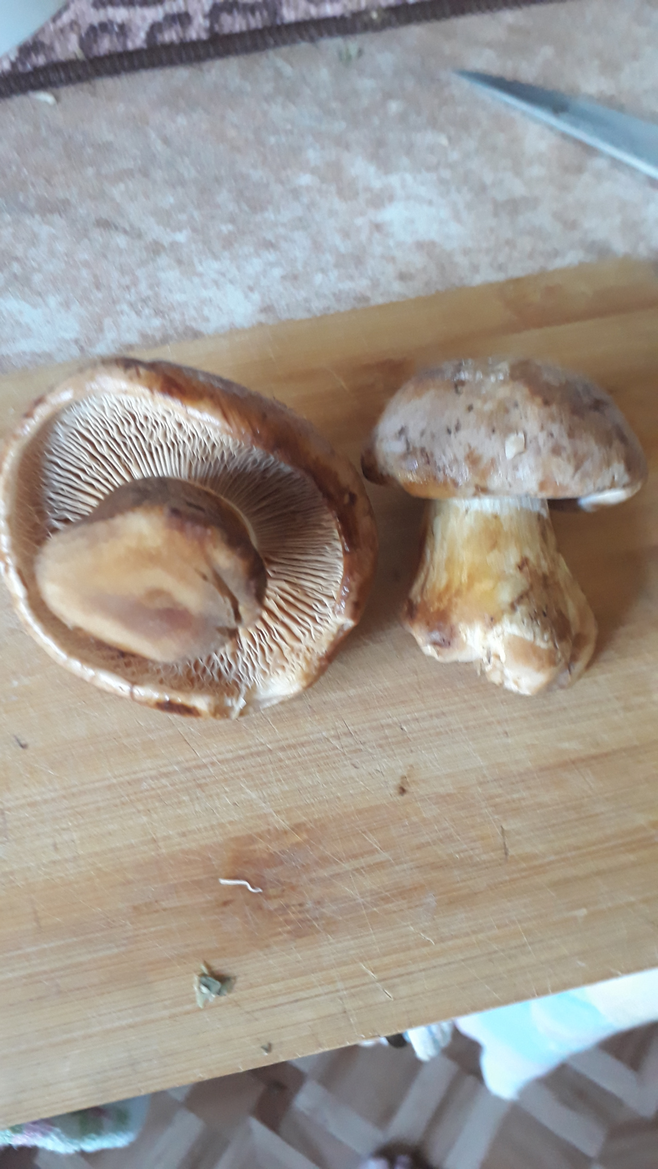 Описание гриба: растет в еловом лесу ,кучками по 3 4 шт вплотную ножка толстая,твердая по срезу белая, окантовка шляпки фиолетовая