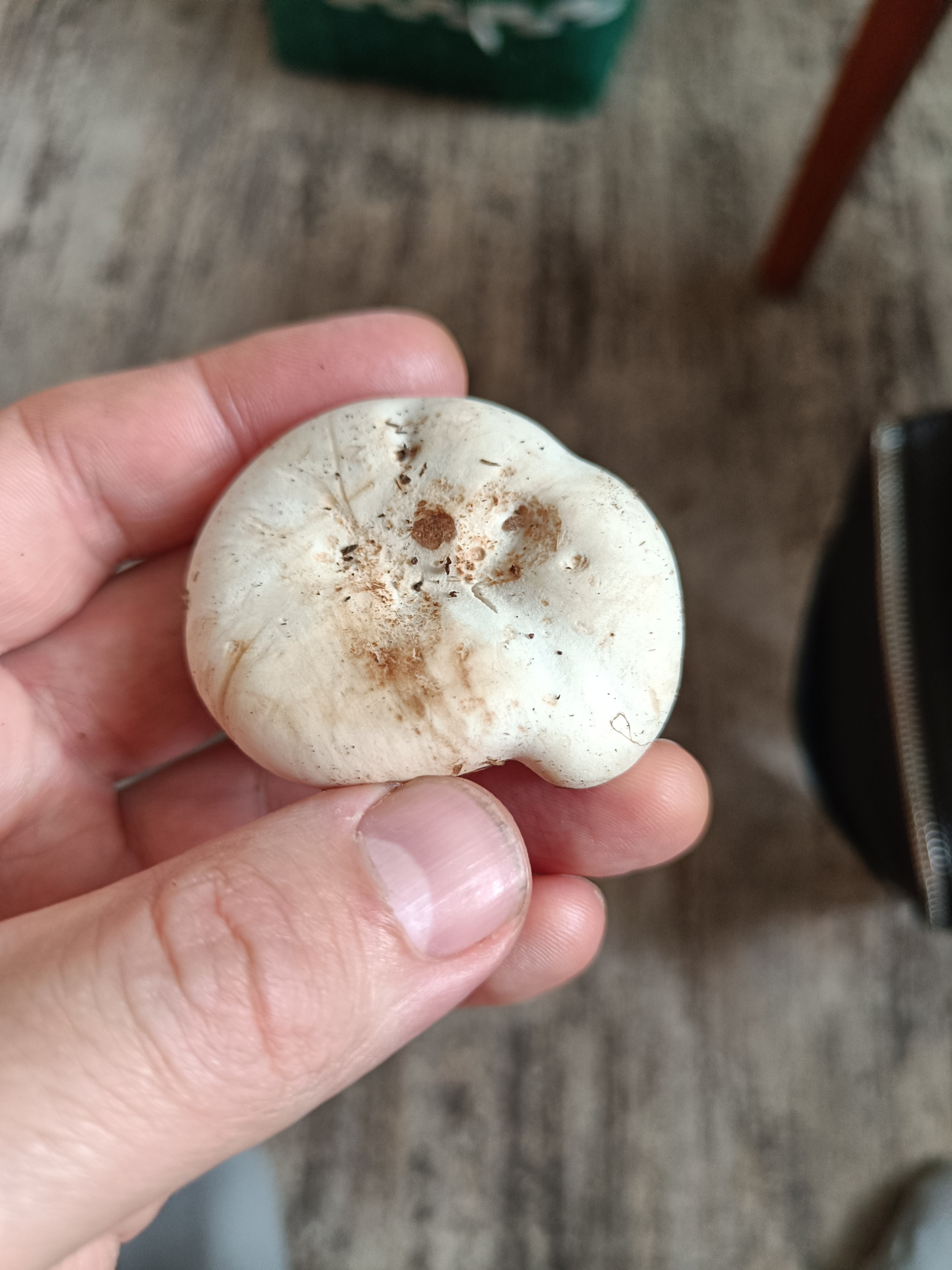 Описание гриба: Свиду похож на груздь, но это точно не груздь. Выглядит как какой то тип рядовки. Так как растет на поляне рядом с лесом целой полосой. Запах приятный наверно мучной, червивых много. Цвет белый, при срезе не меняется окраска