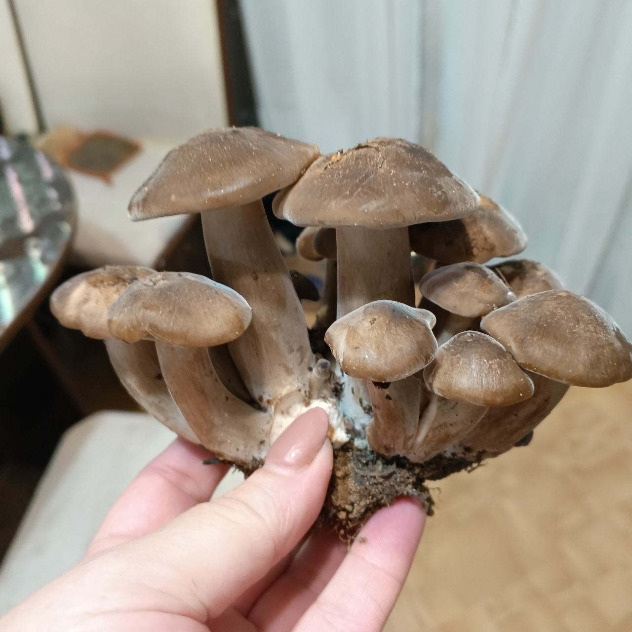 Описание гриба: Лес смешанный, цвет коричневый, шляпки сухие немного бархатные, ножки толстенькие, пластинки молочного цвета частые