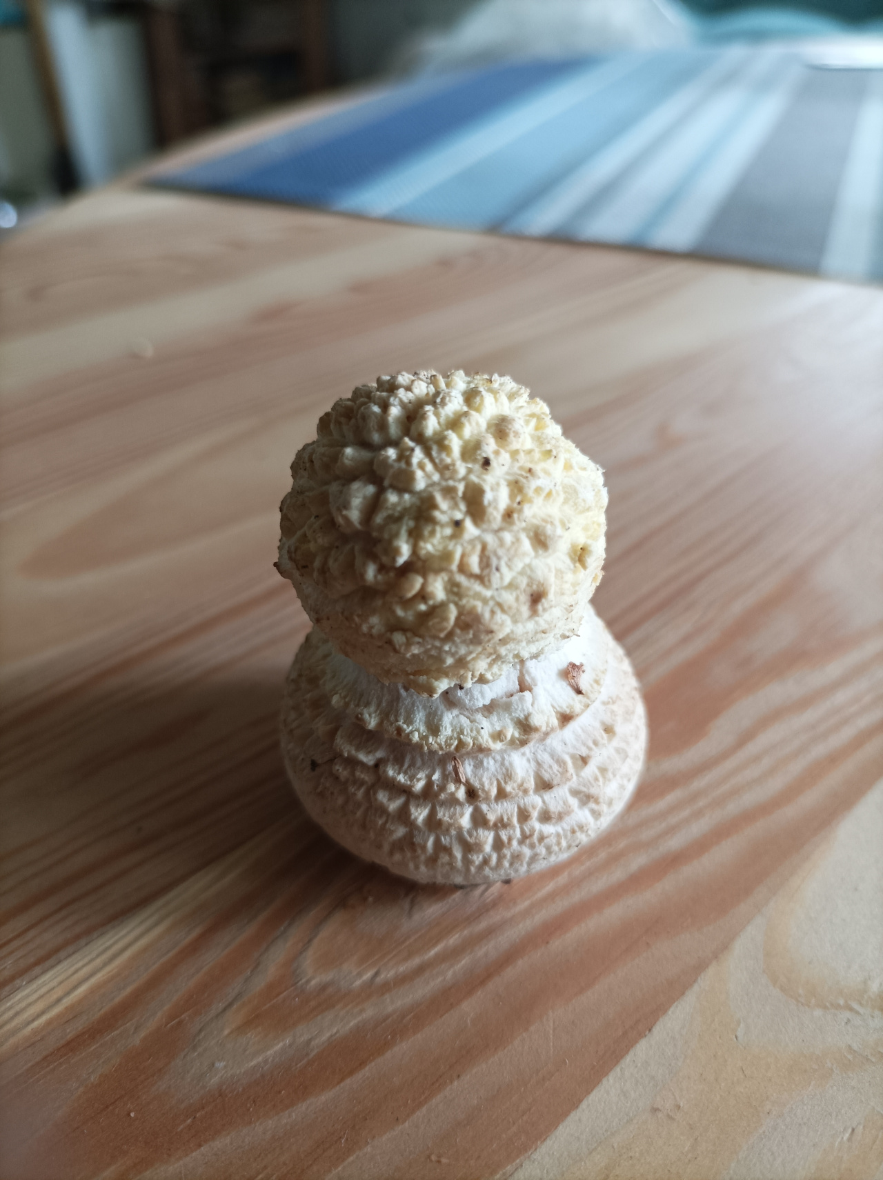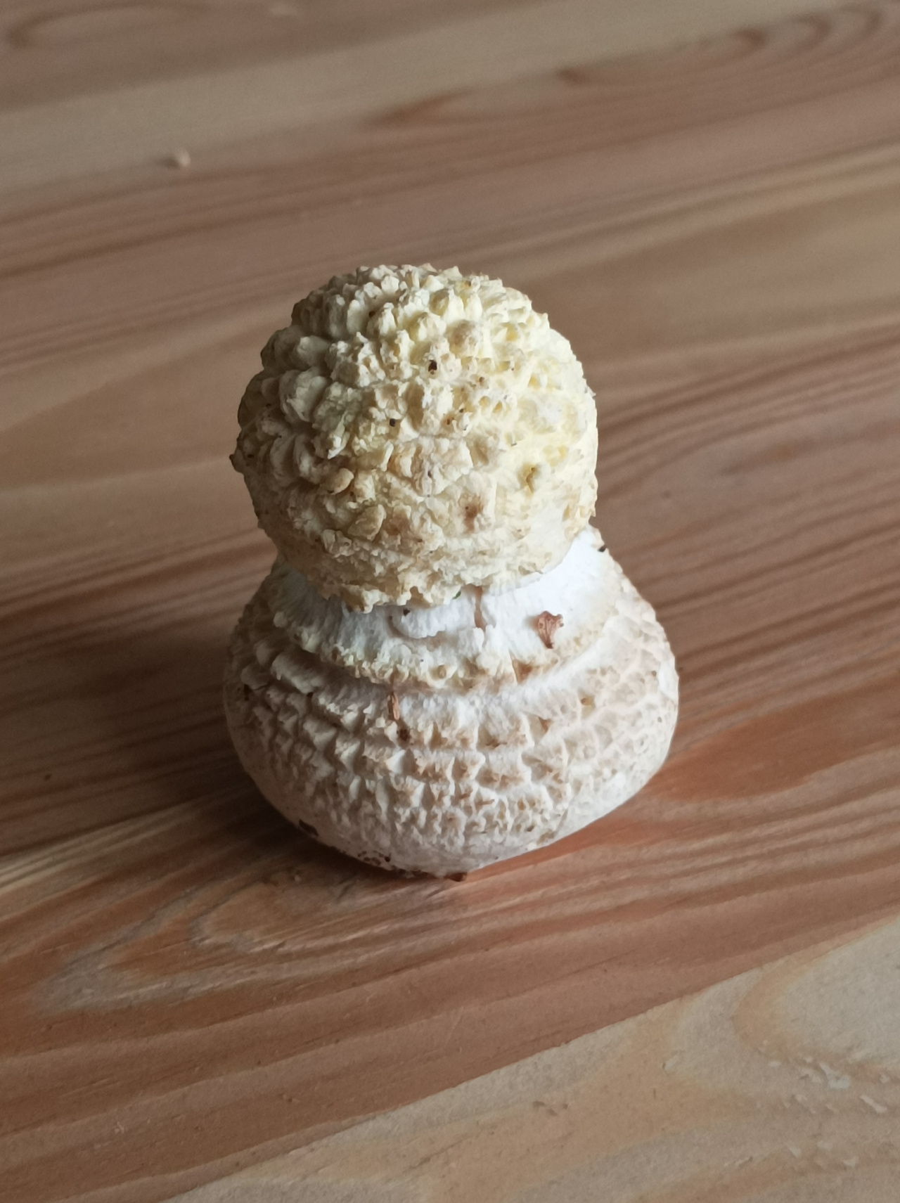 Это остатки общего покрывала на шляпке. Если бы гриб рос, промежутки между частичками покрывала разошлись бы, стало бы видно кожицу шляпки, сейчас ее не видно. Так получаются «бородавки» на шляпке.
