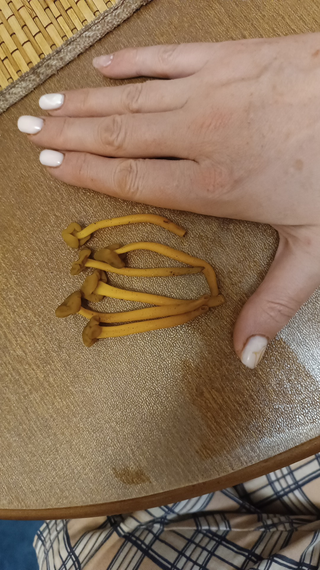 Описание гриба: Тонкая длинная желто-горчичная ножка и коричневая «смятая» мелкая шляпка, очень приятный и достаточно сильный аромат, с чем сравнить — не знаю