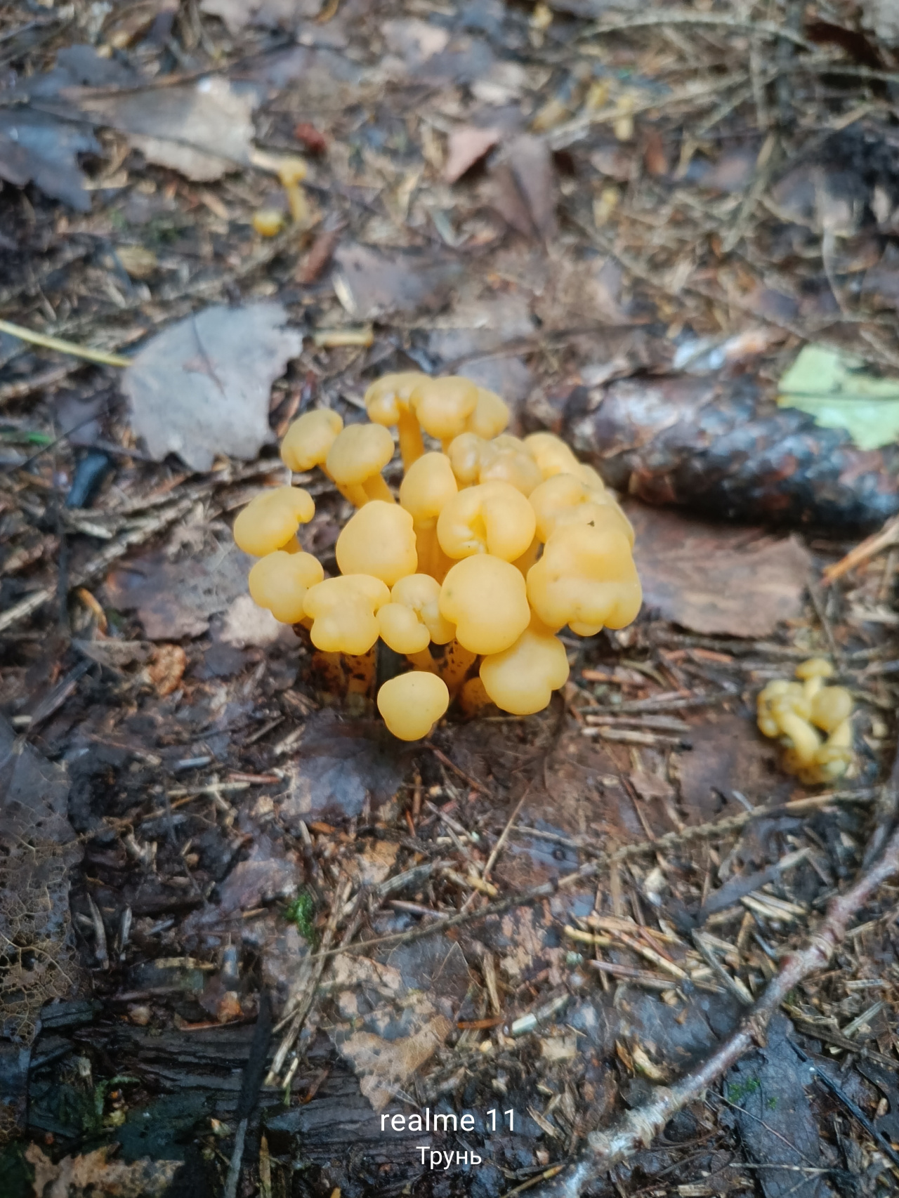 Росли семейкой. Запаха не имеют. Срывать не стал, ибо предположение, сто это леотия студёнистая, которая в Лен обл расти не должна.