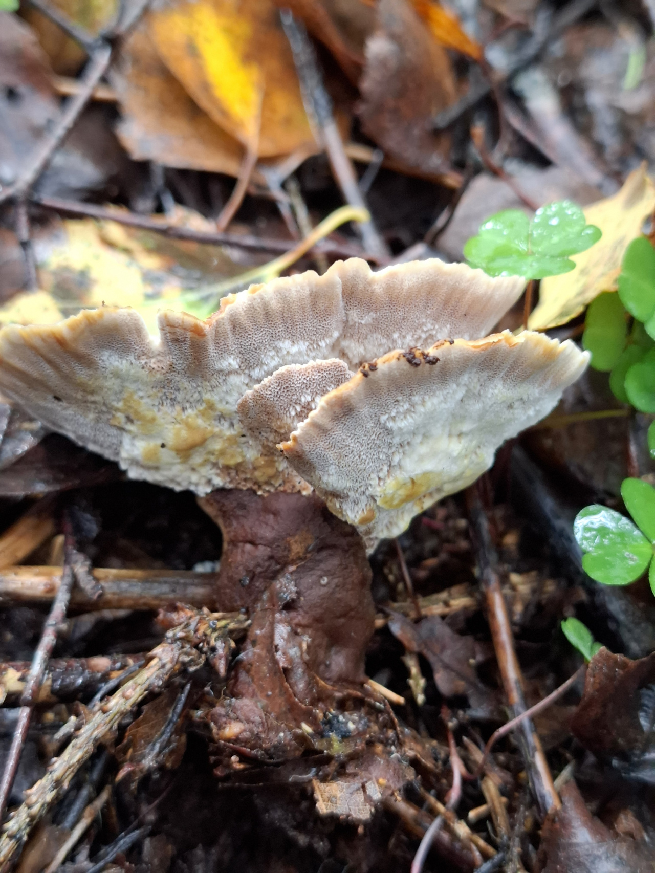 Описание гриба: Смешанный лес. Рос на опавшей листве. Мясистая ножка и сам мясистый. Аромат очень знакомый, возможно на опята.