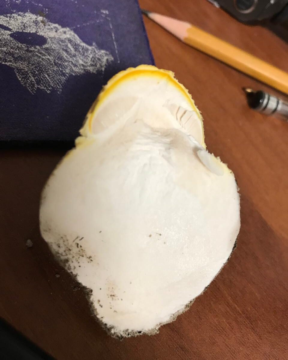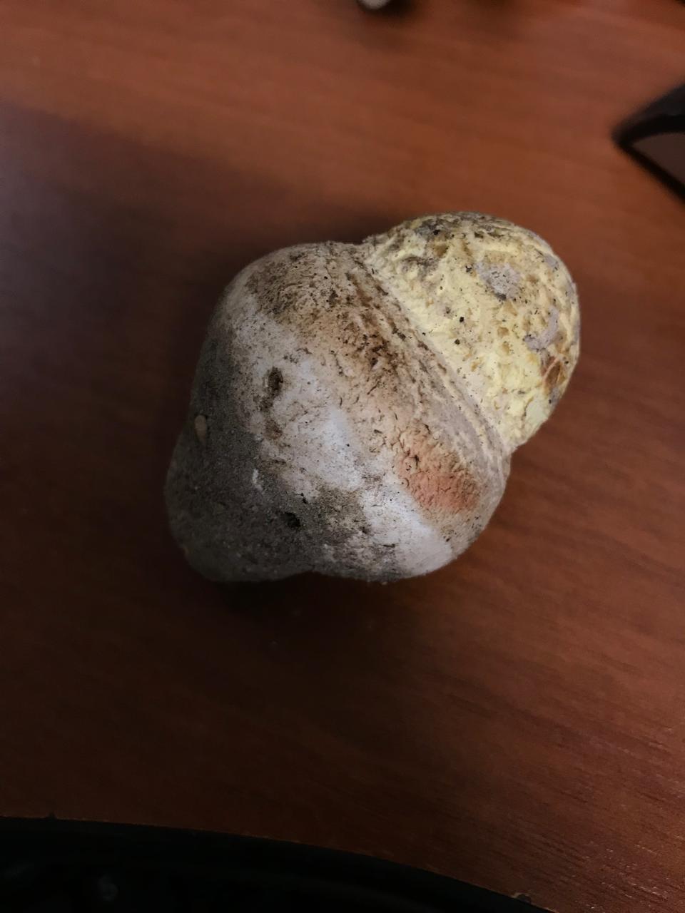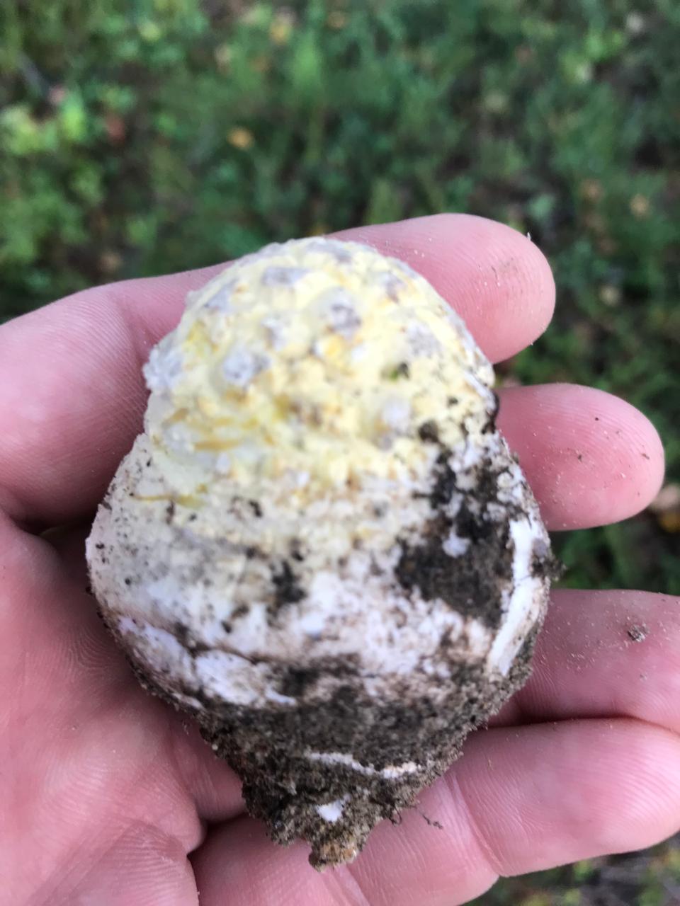 по-видимому, это очень молодой мухомор (Amanita sp.) Разрез продольный очень помог бы в идентификации