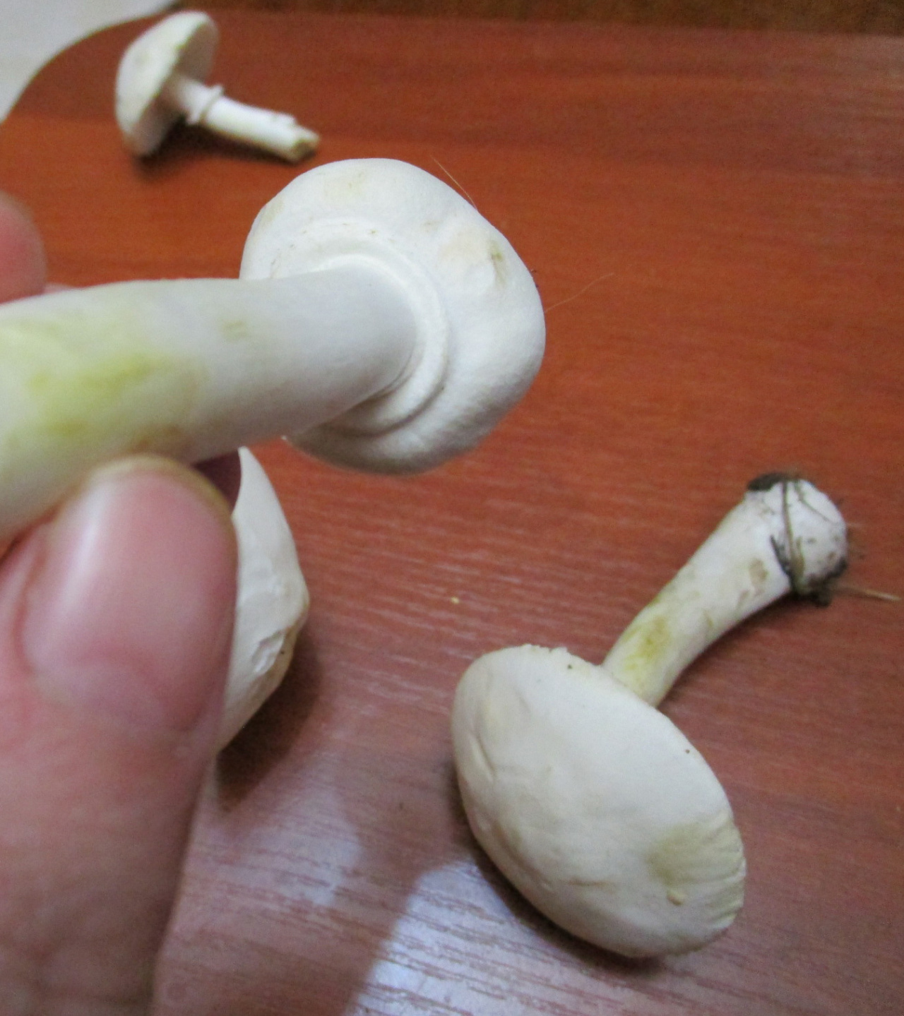 Интересно, а зеленоватые или желтоватые пятна на поверхности мякоти для белошампиньона — норма?