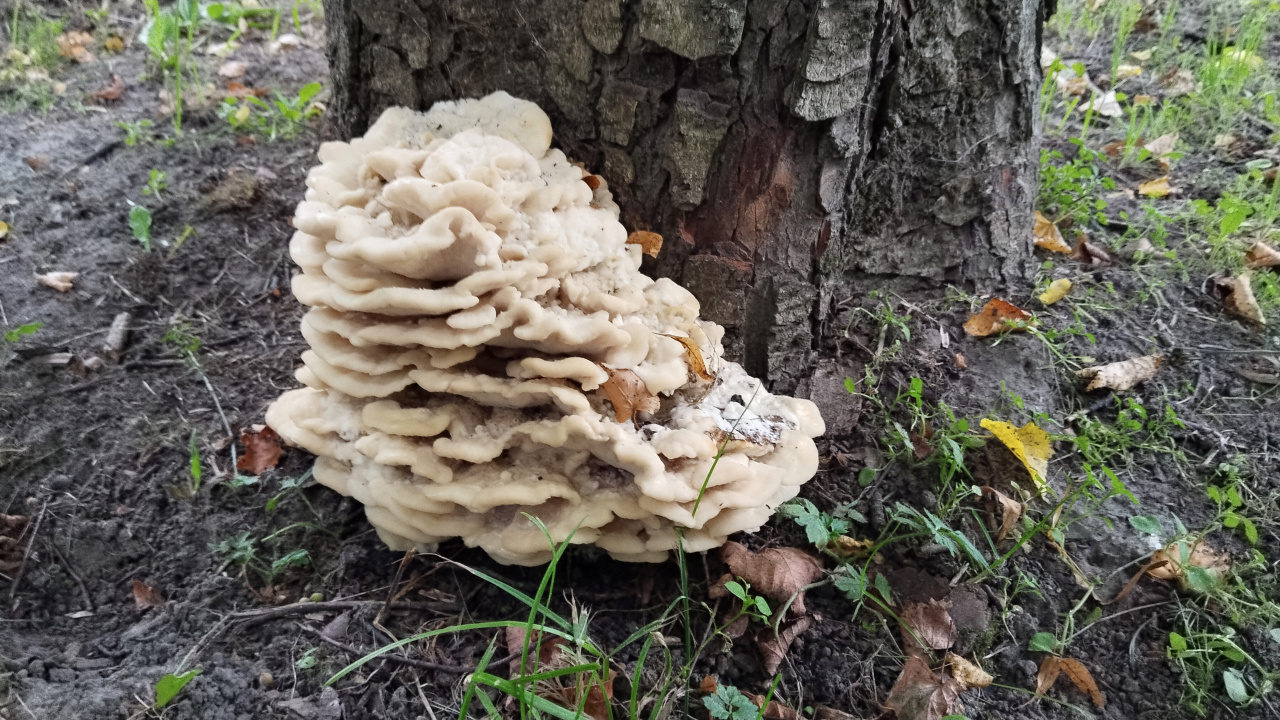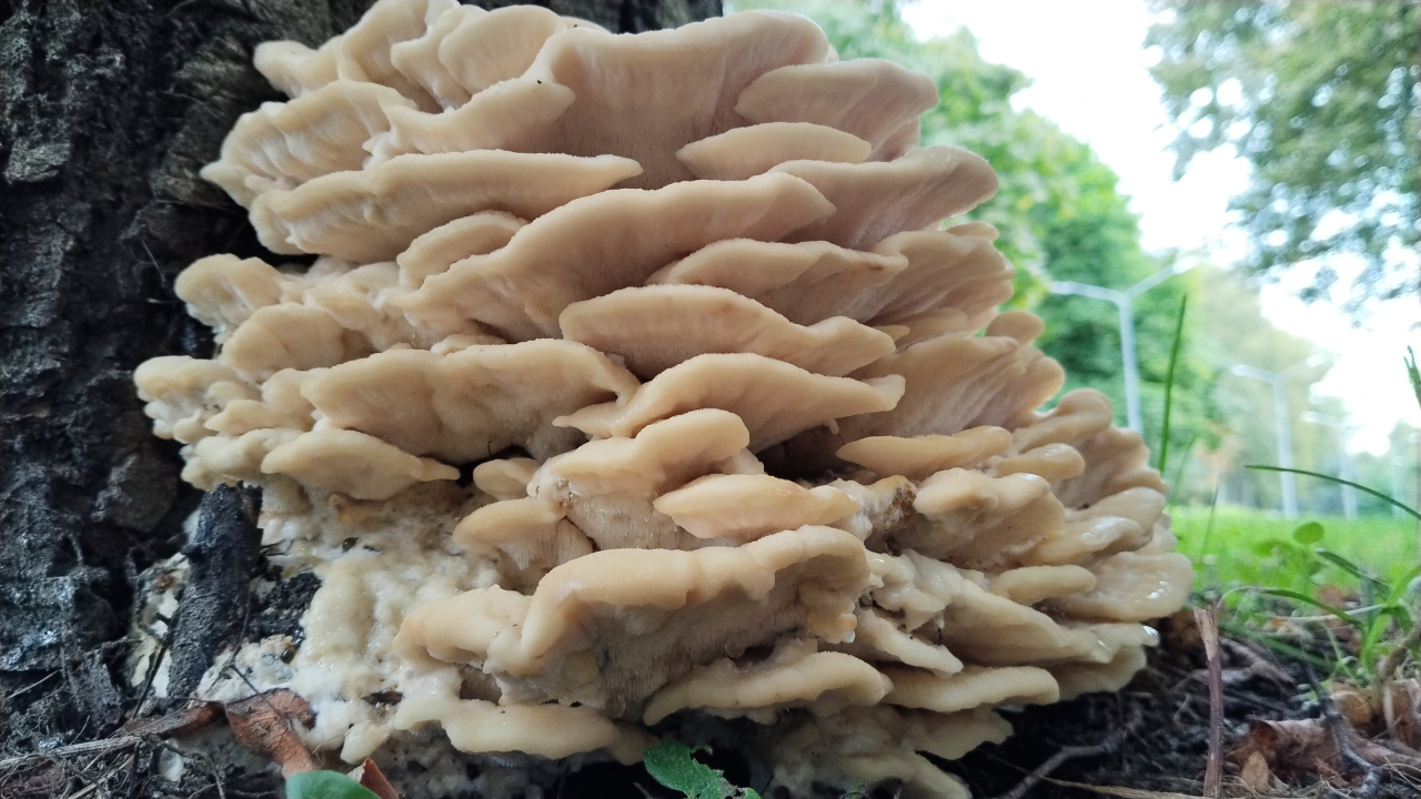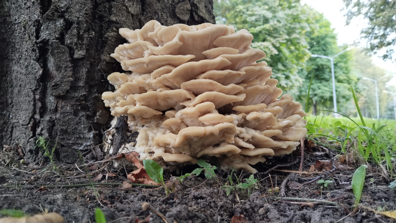 Описание гриба: Этот трутовик вырос у основания живого дерева, Каштан конский.