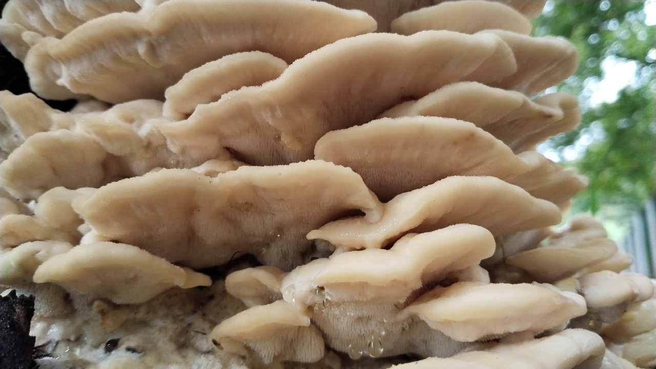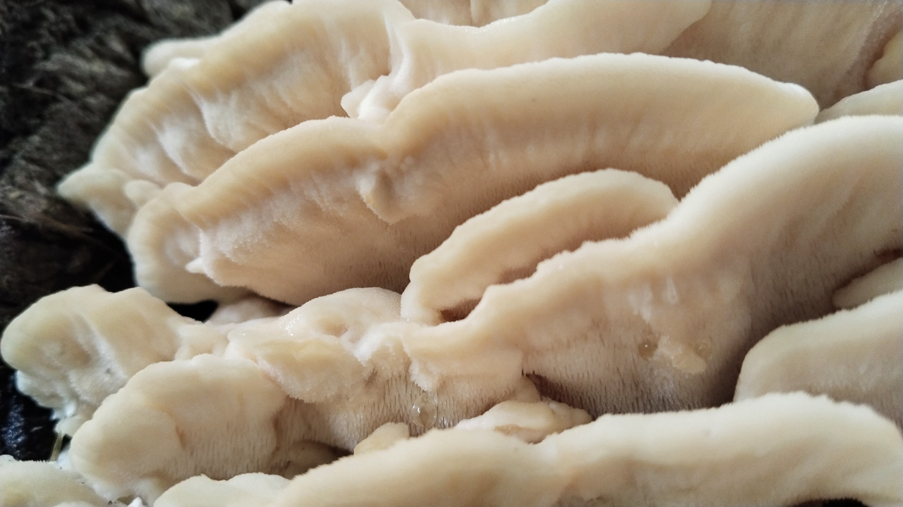 Гриб как плотная резина. Попытался отломать кусочек, не получилось, разрывается вдоль лопасти, гнётся но не ломается. Гименофор — шипики.