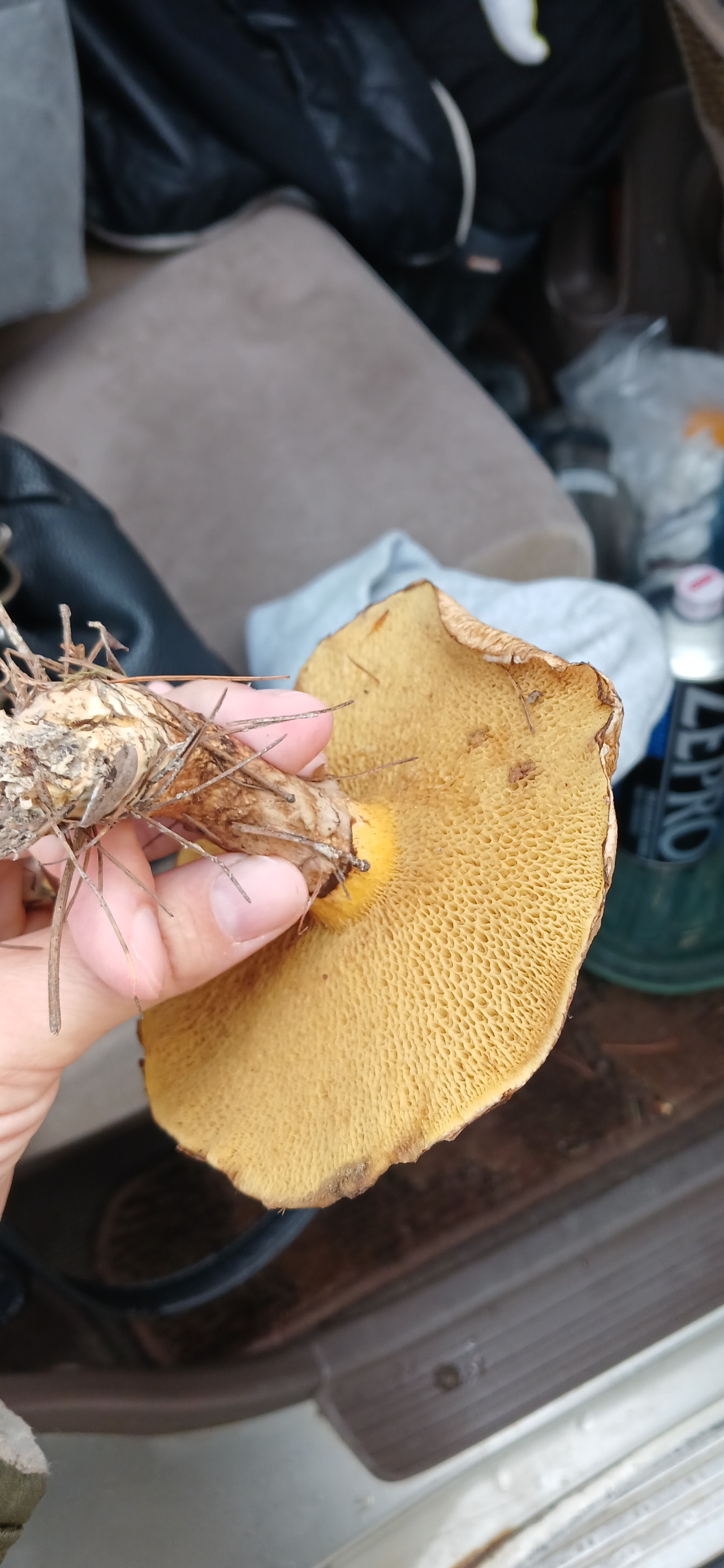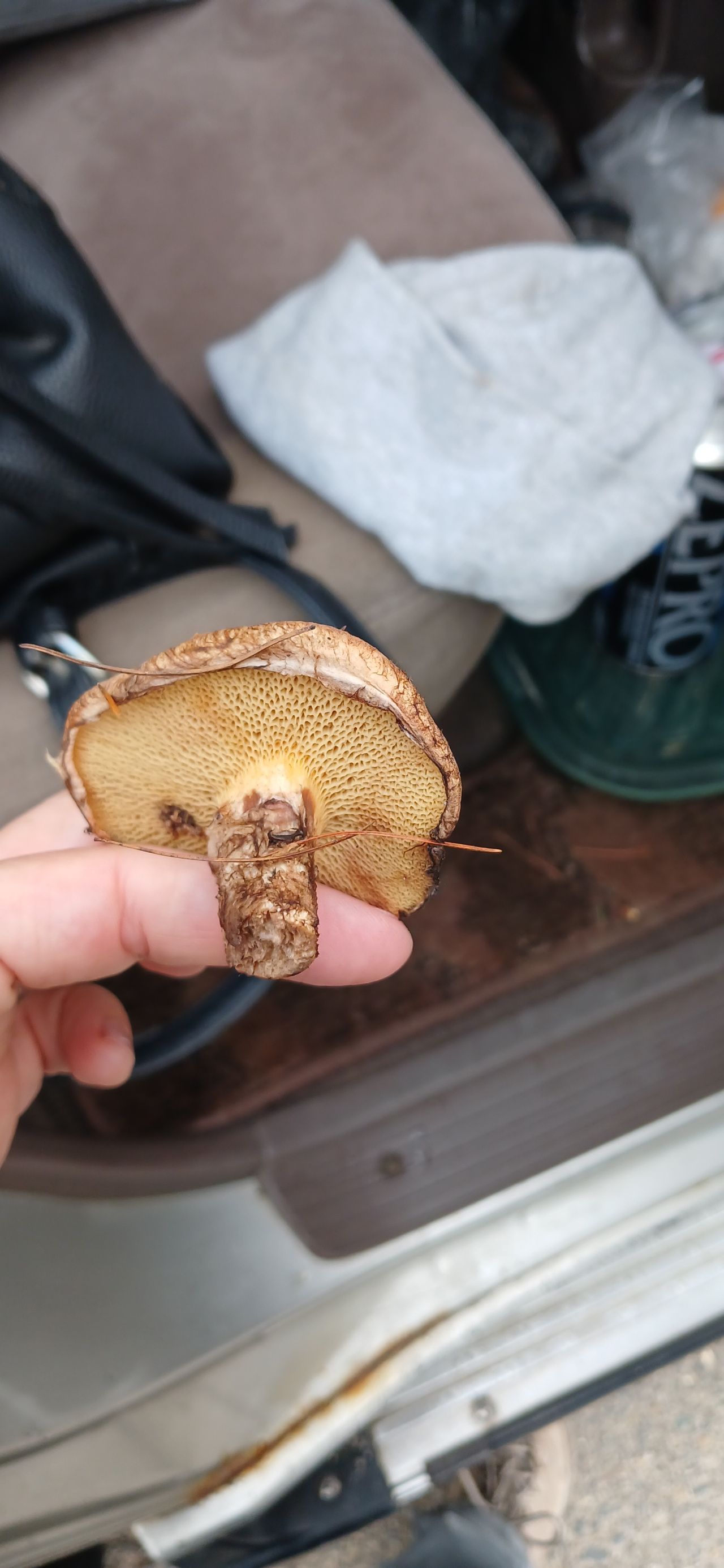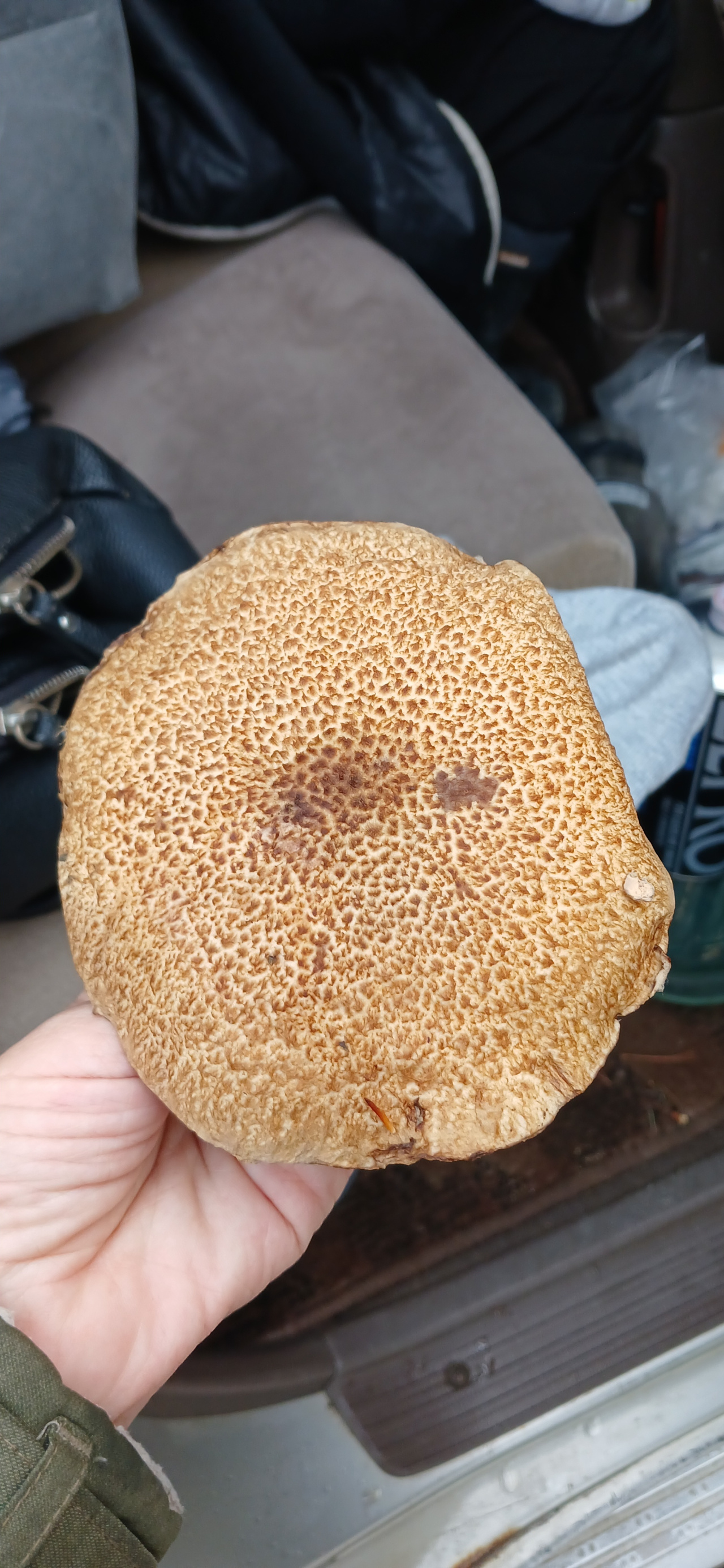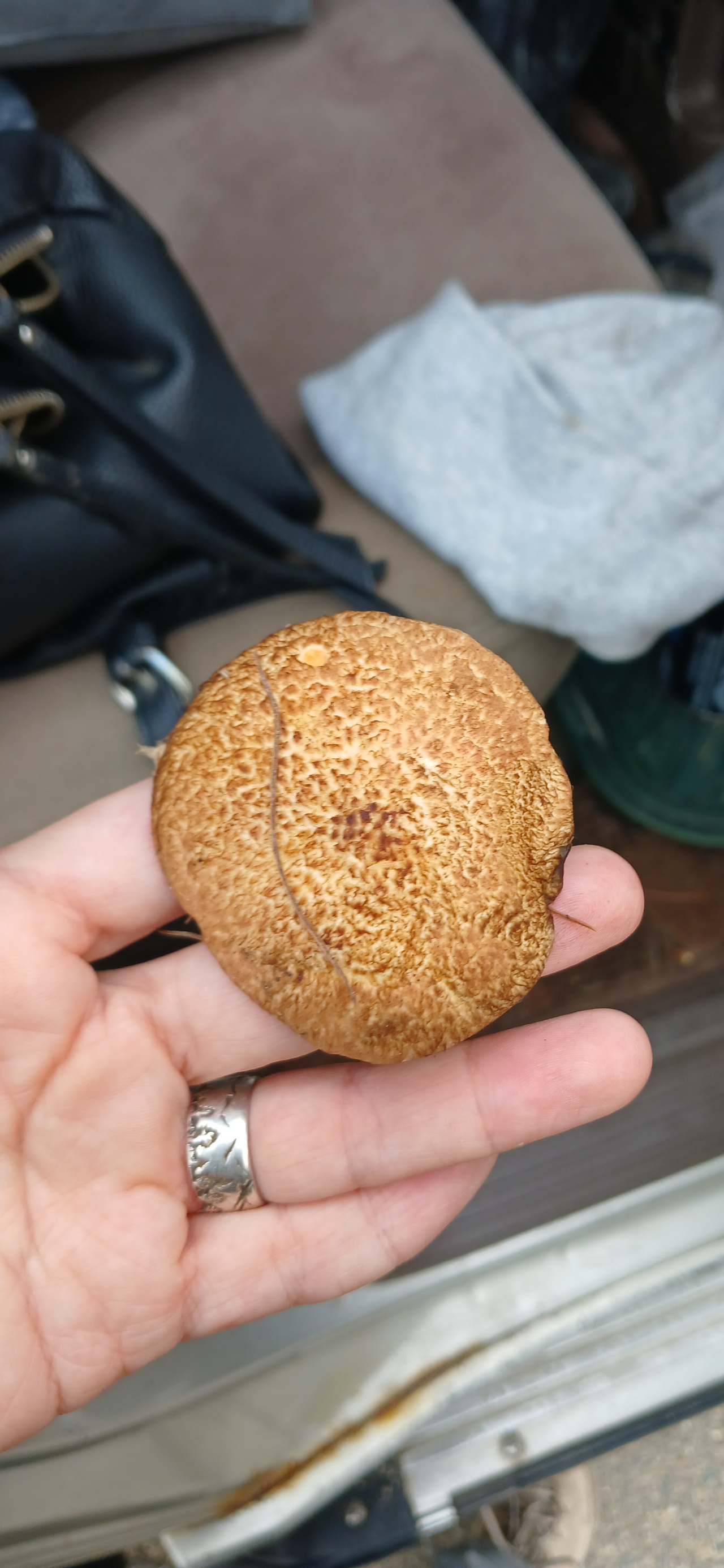 Описание гриба: Гриб серовато-коричневого цвета, похож на раскрашенный масленок, но я не уверенна. Растет рядом с другими маслятами в большом количестве. Шляпка не потрескавшаяся, а именно такой тектсуры.