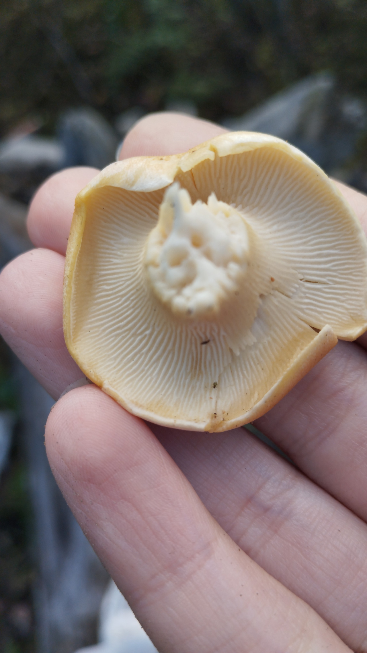 Описание гриба: Запах приятный грибной, найден на упавшем пне рядом с рекой Иртыш, руками только верхушку получилось забрать, на следущий день потемнел чуть чуть