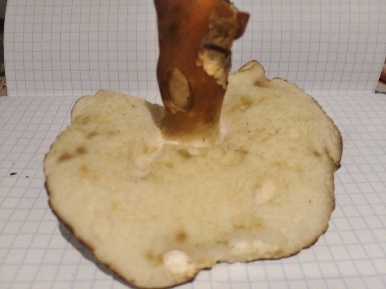 Описание гриба: Корженевский лесок. Шляпка 13 см. Крепкий. Ножка тёмная, внутри светлая. Без запаха .Слизняки поели его.
