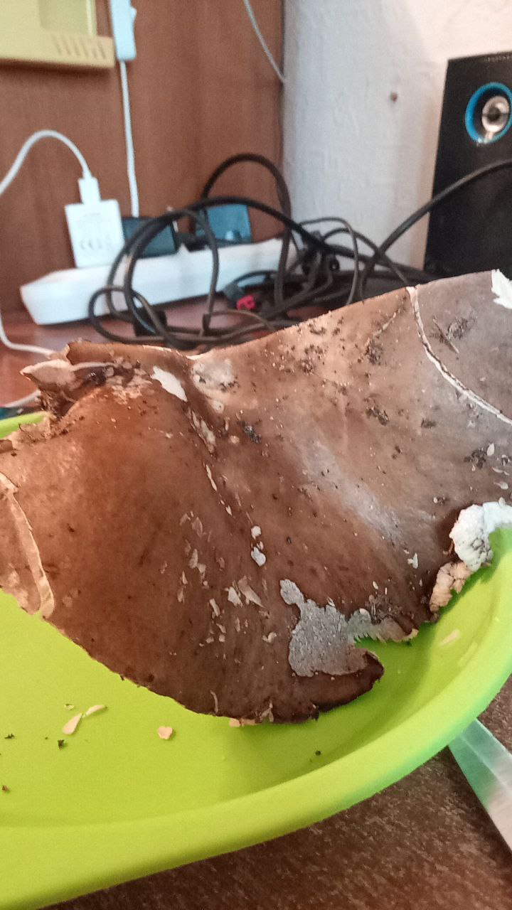 Описание гриба: гриб с коричневой шляпкой белой ножкой внутри полнотелый и белый