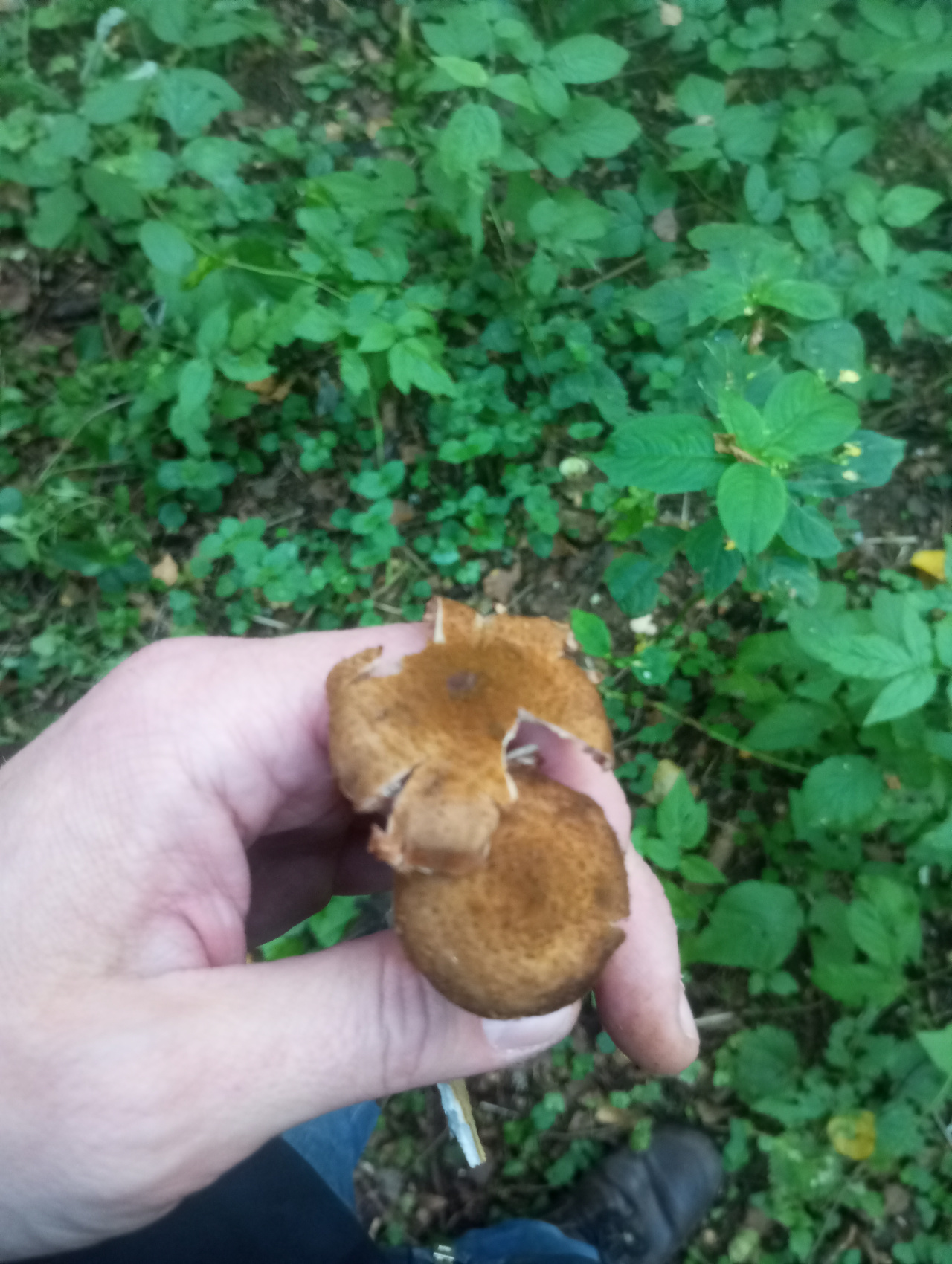 Описание гриба: Это осенние опята? Вроде они, цвет смутил. Пахнут приятно, грибами, Московская область, старый сосновый и еловый лес. 06.09.2025.