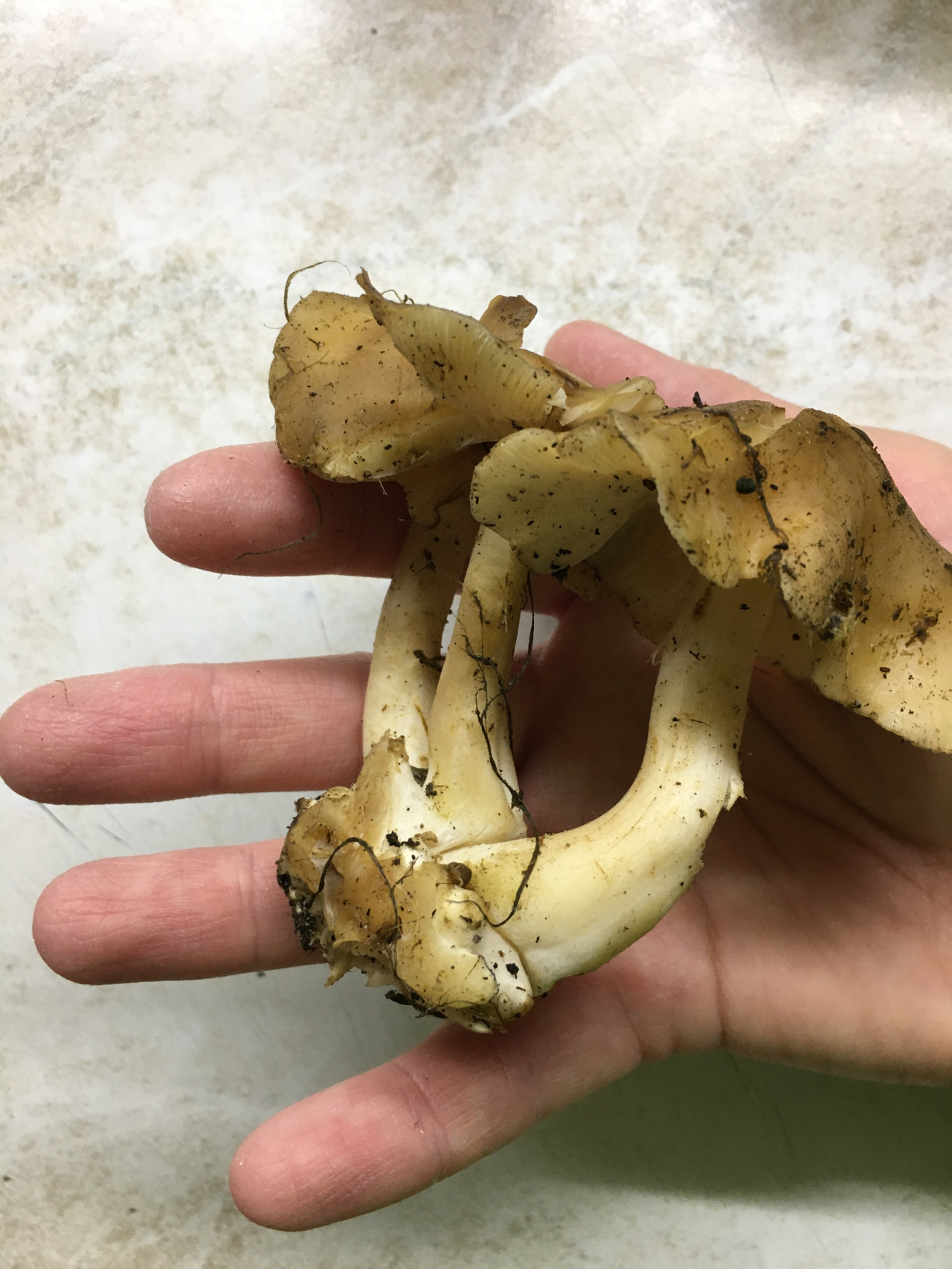 Описание гриба: Нашли на лесной тропинке в траве, росли сростками