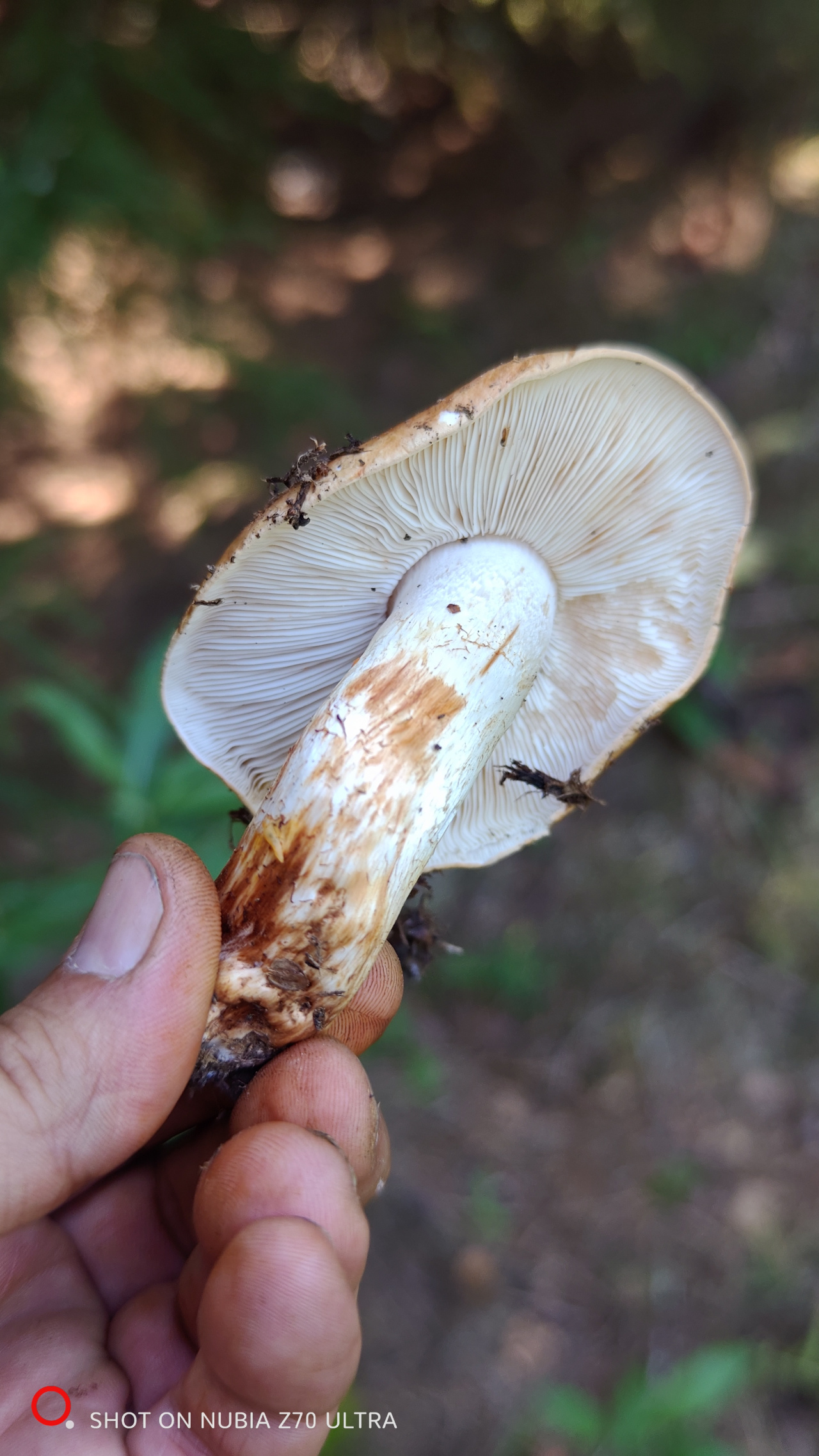 Описание гриба: 07.09.2025. Владимирская область. Растет в молодых ёлках. Особого запаха нет. Встречается не часто! Луковицы в основании нет.