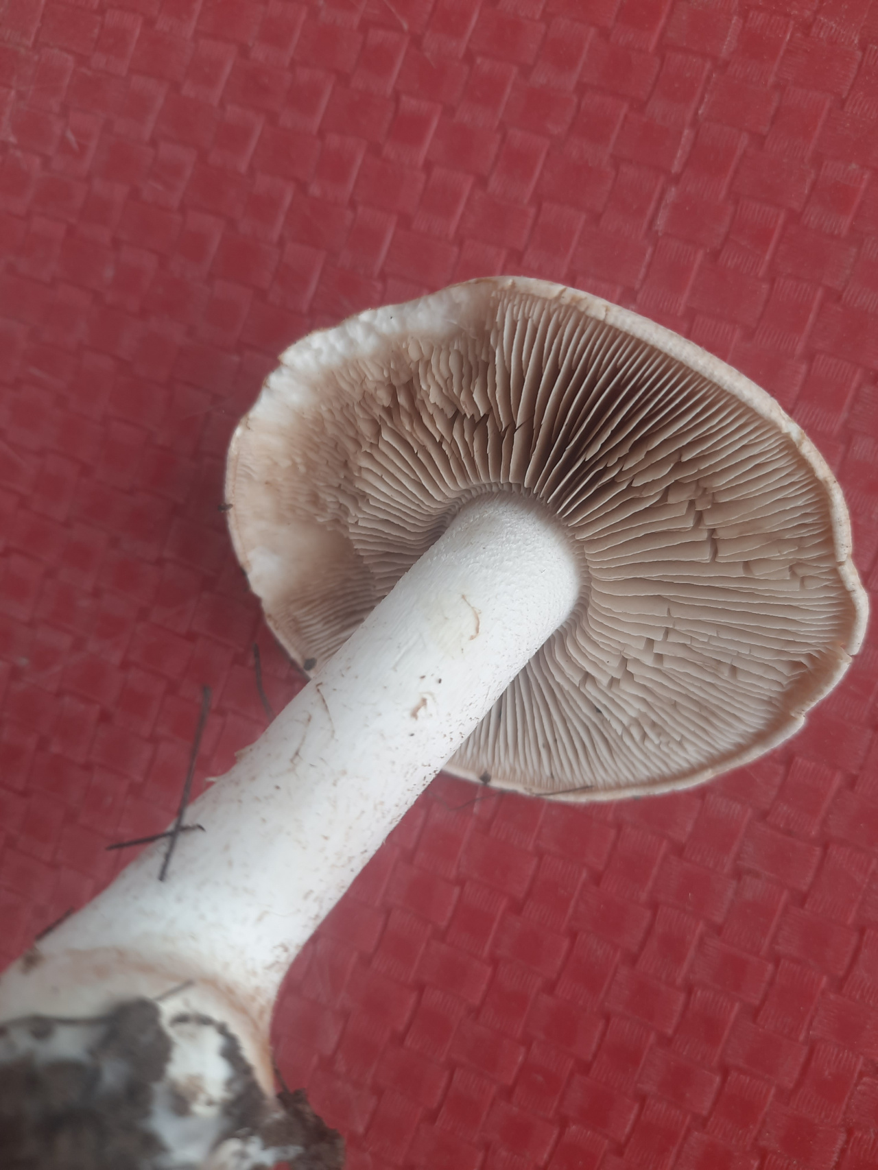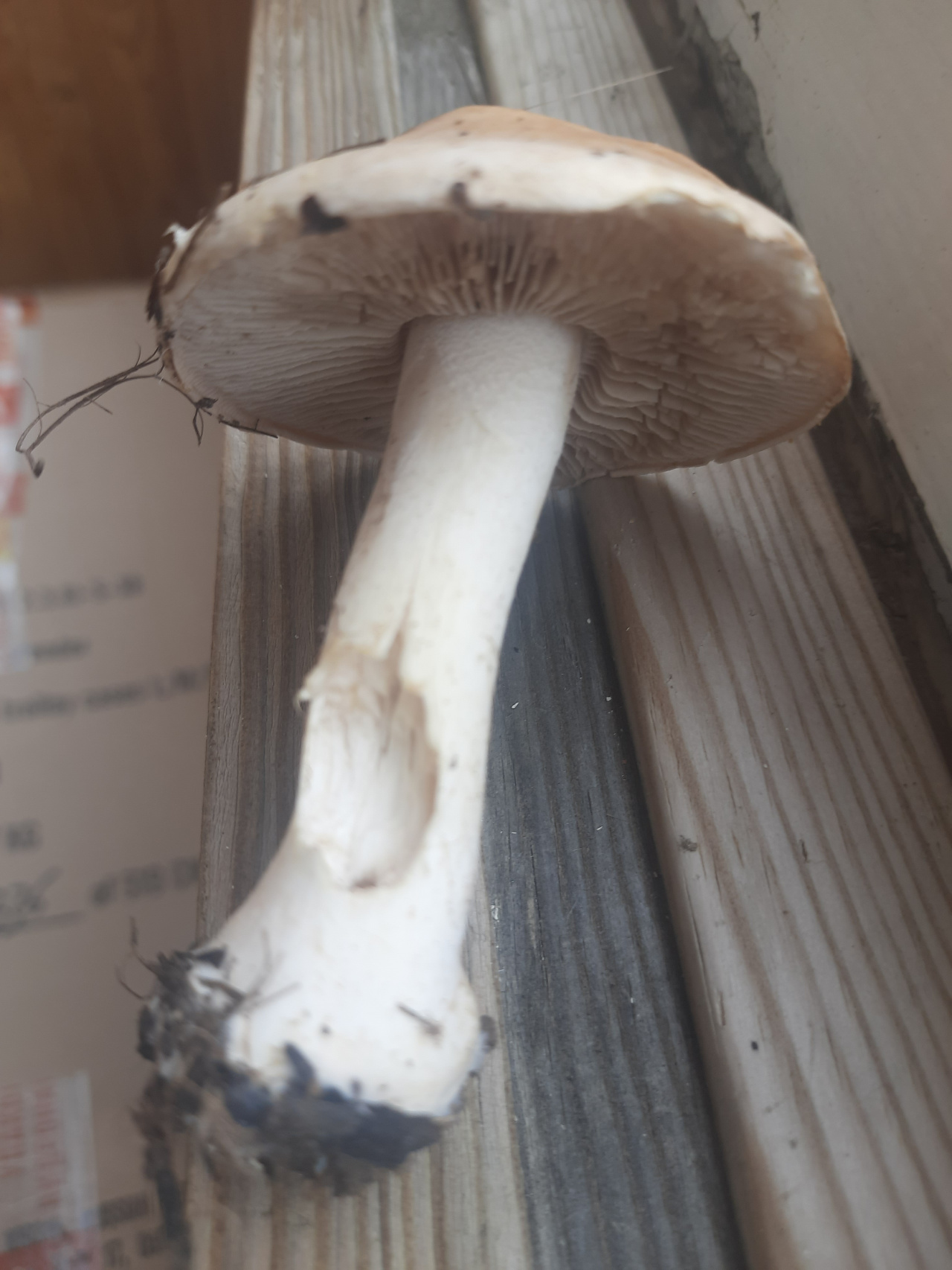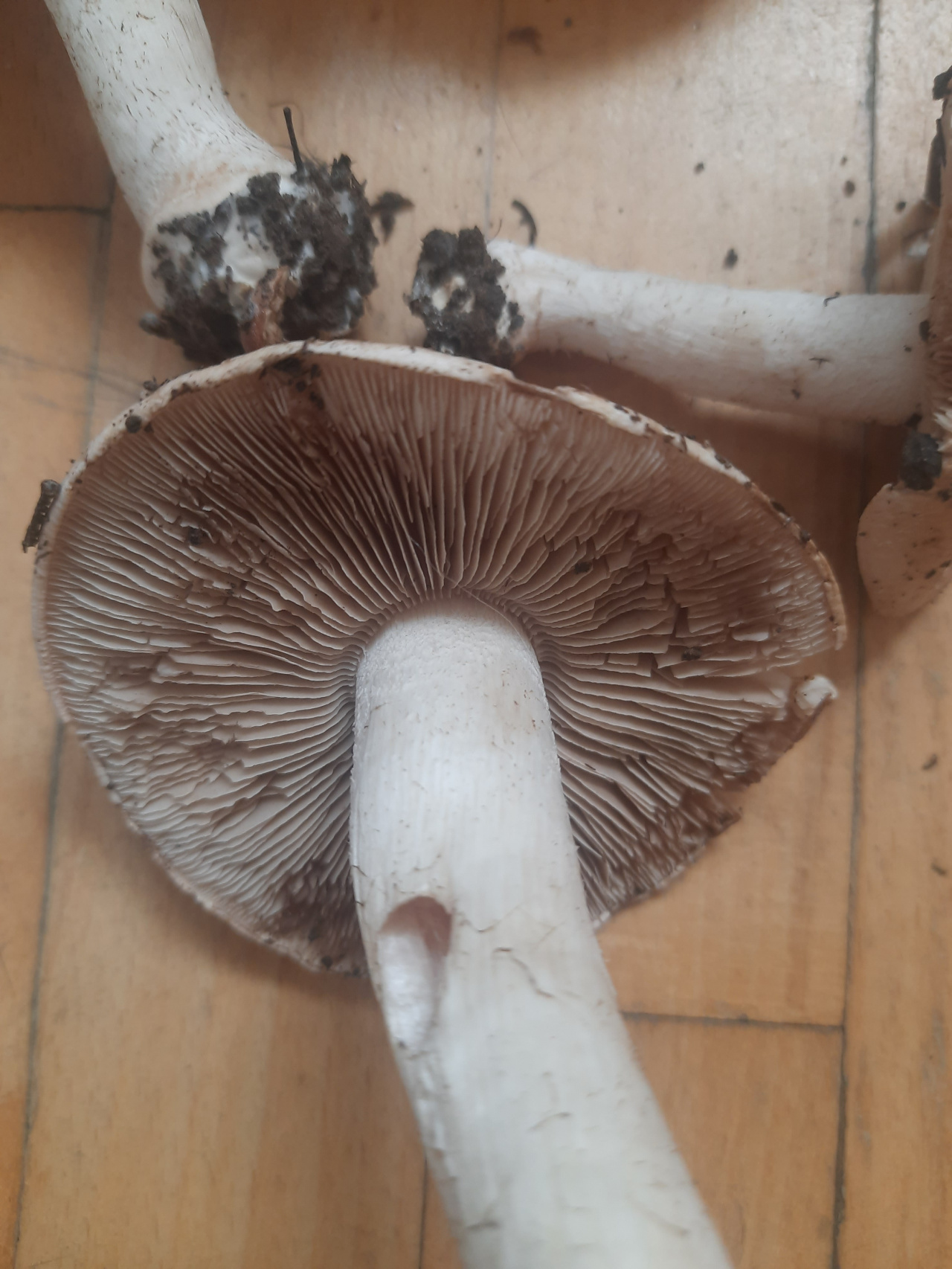 Описание гриба: Гриб похож на рядовку.Пластинчатый светлого цвета.Шляпка светло-бежевая.Не слизкий,сухой. Ножка белая.Колец никаких нет. Пластинки светло-коричневатые.Растет группой в овражке в смешанном лесу.Запах характерный, как будто анисовый.