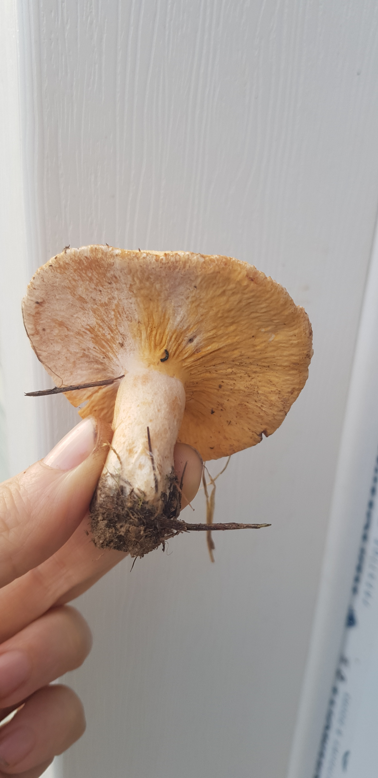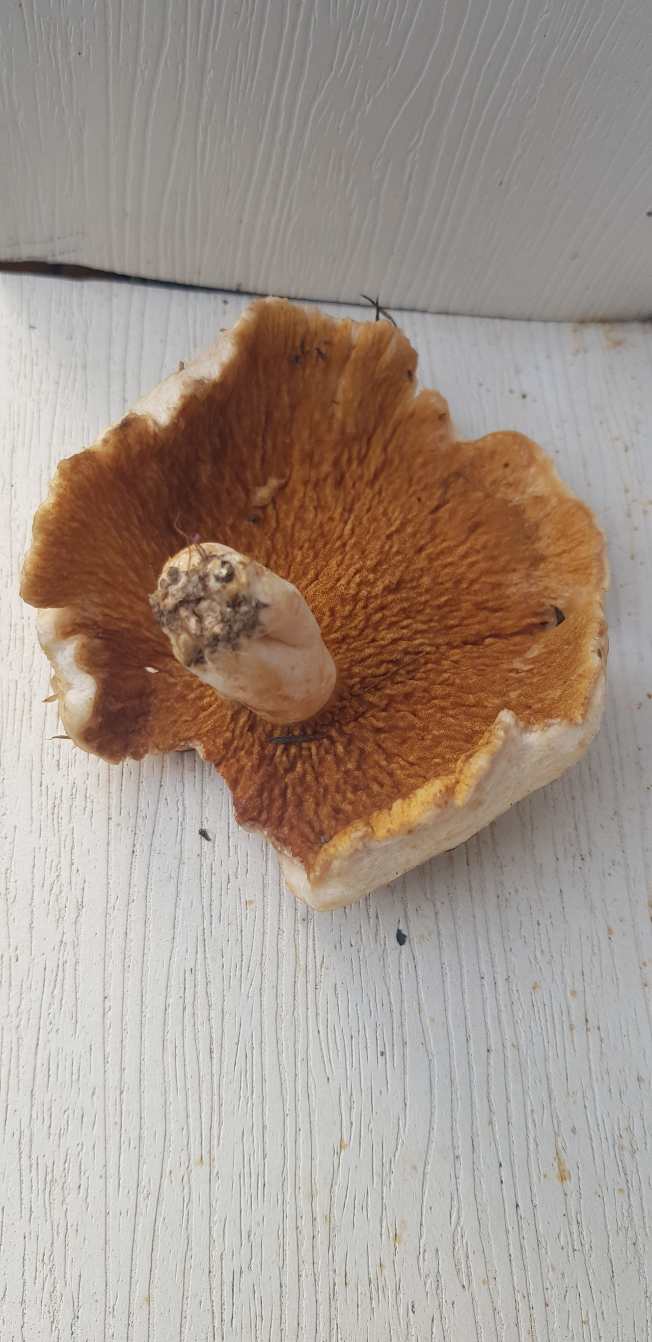 Описание гриба: Странный гриб. Под шляпкой нет ни пластинок, ни трубчатого слоя. Он просто достаточно твердый там под шляпкой. рос рядом с березой на травяном лугу. ярко-выраженного запаха нет. цвет вроде не меняет