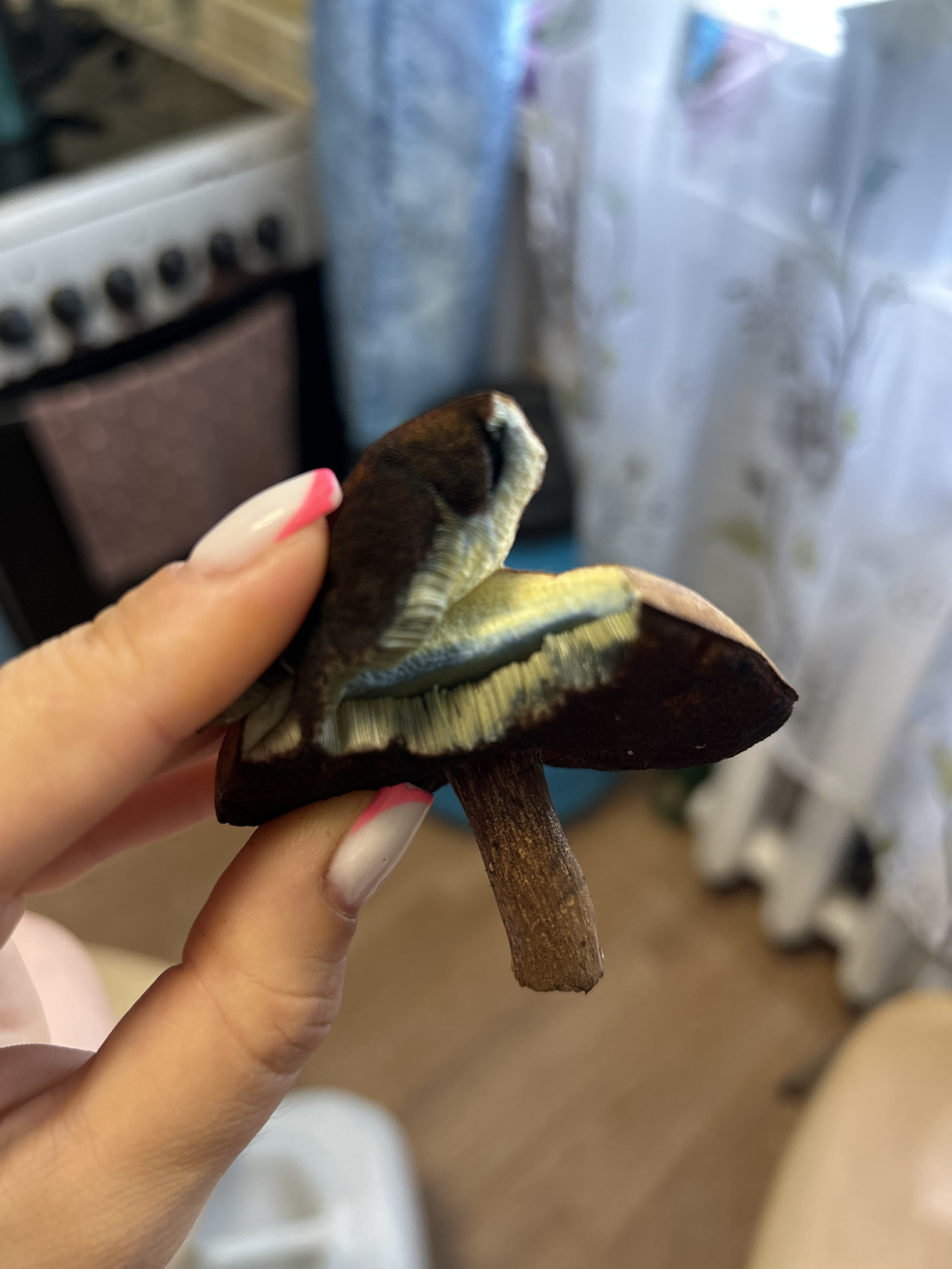 Описание гриба: Помогите определить что за гриб ,синеет на срезе растет в Приморье