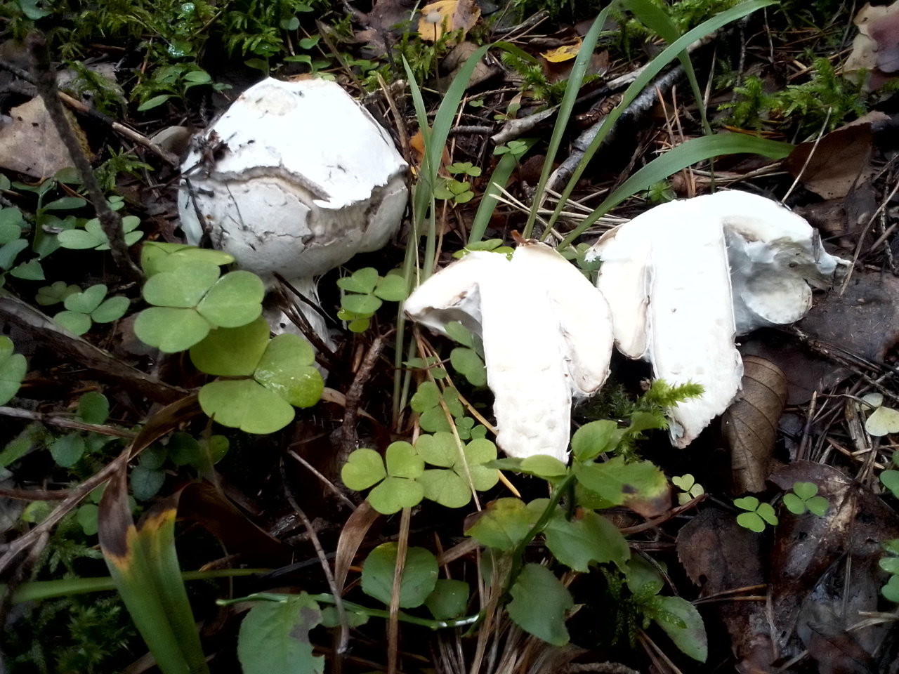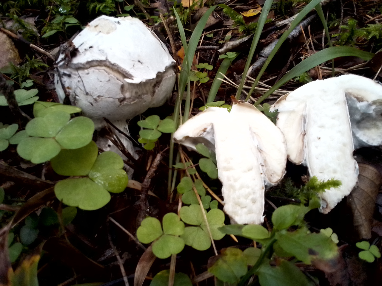 Выглядит как яйцо спрятанное в травке. Молодые грибы на разрезе белые, с ростом заметна ножка и внутри темнеют.