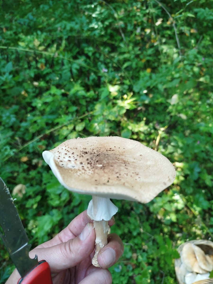 «Да, были сомнения на счет этих грибов. Т.к. юбка странная какая-то была, не двигалась по ножке. Но в итоге взял их, доверился запаху и то, что они кучно росли. И еще, что на шляпке эти точки легко пальцем стираются. В итоге в яйце пожарили и съели с огромным удовольствием! )))»
