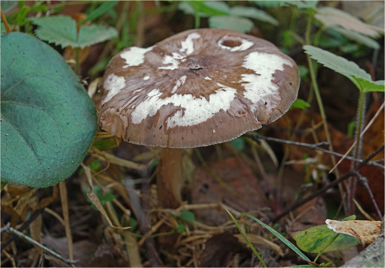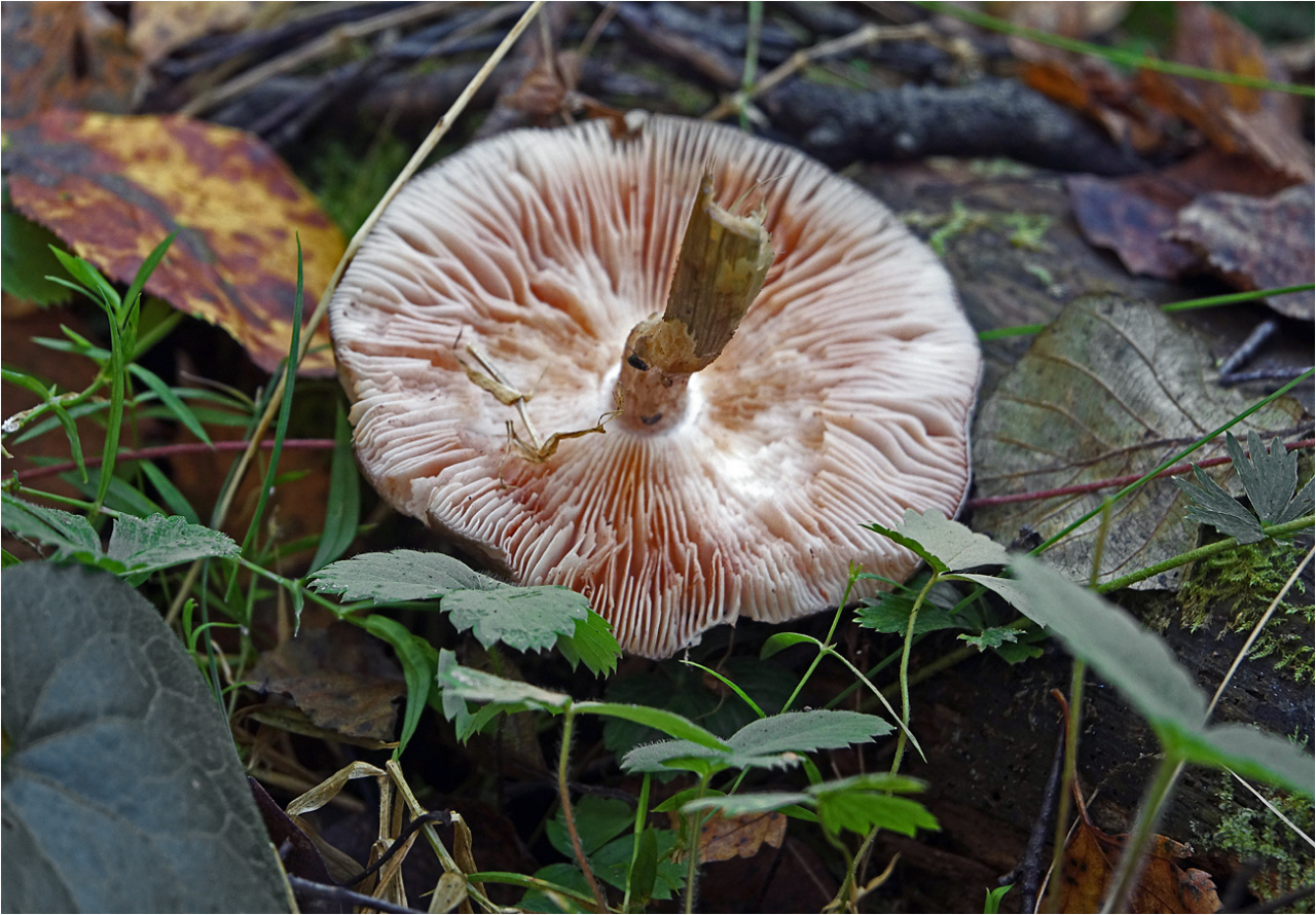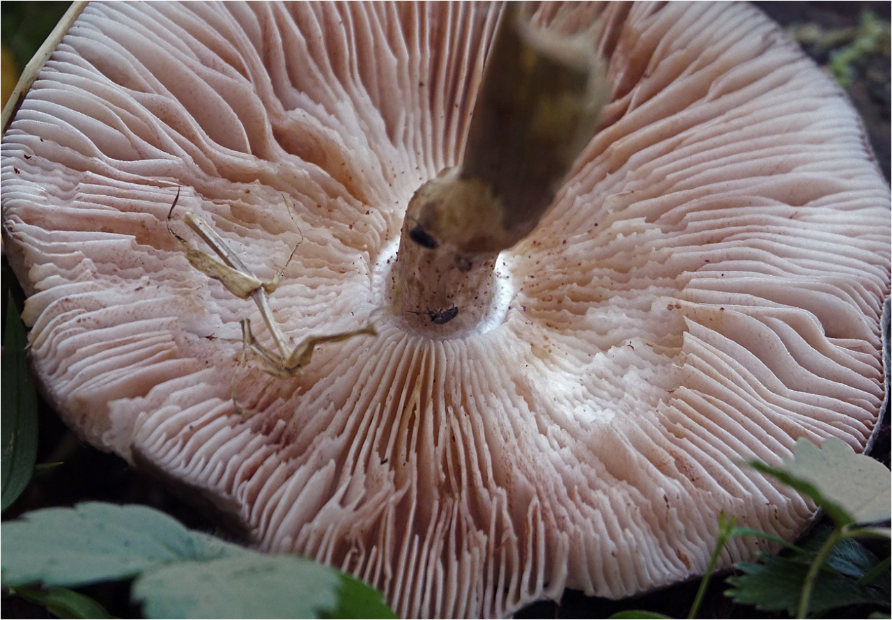 Описание гриба: Юго-Восток Московской области, Раменский район, окрестности н/п Хрипань, смешанный лес с преобладанием лиственных, на земле, шляпка объедена слизнем. 09.09.2025.