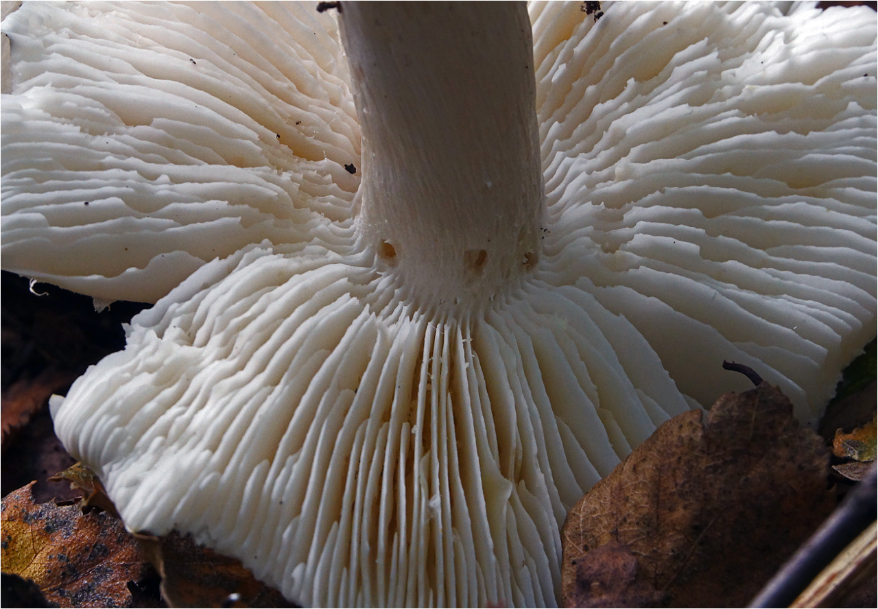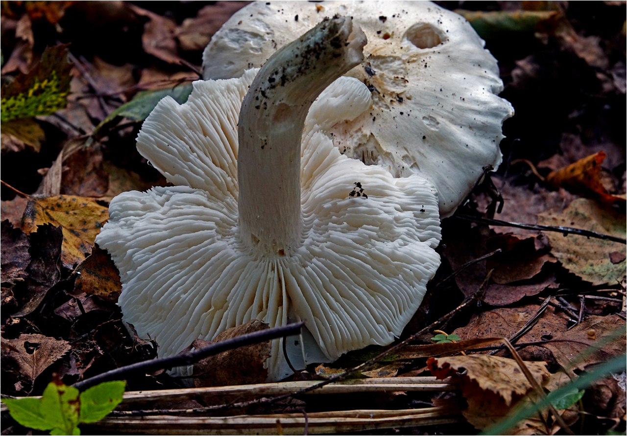 Это либо Рядовка горбатая, либо Рядовка голубиная. Только что такие же находил. Пока сам не определился.