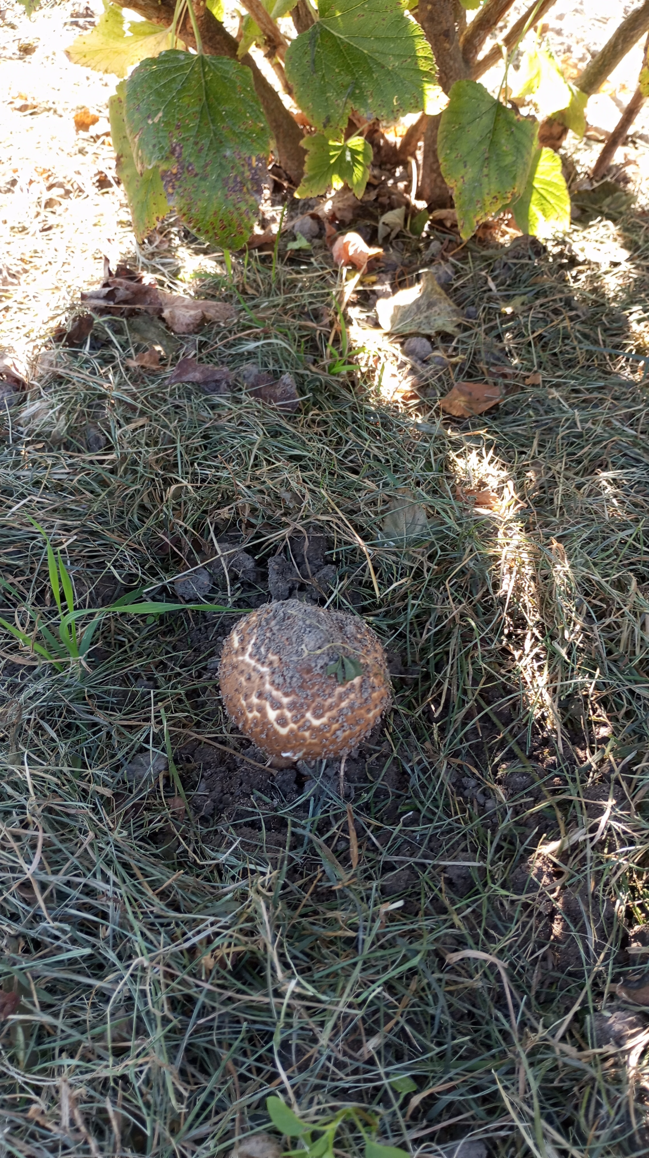 Описание гриба: Вырос на даче, под смородиной! Пока не срывала, дочка хочет посмотреть. Интересно, что это за гриб и что с ним делать?