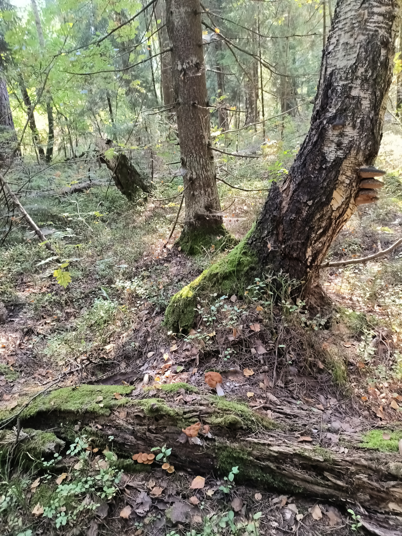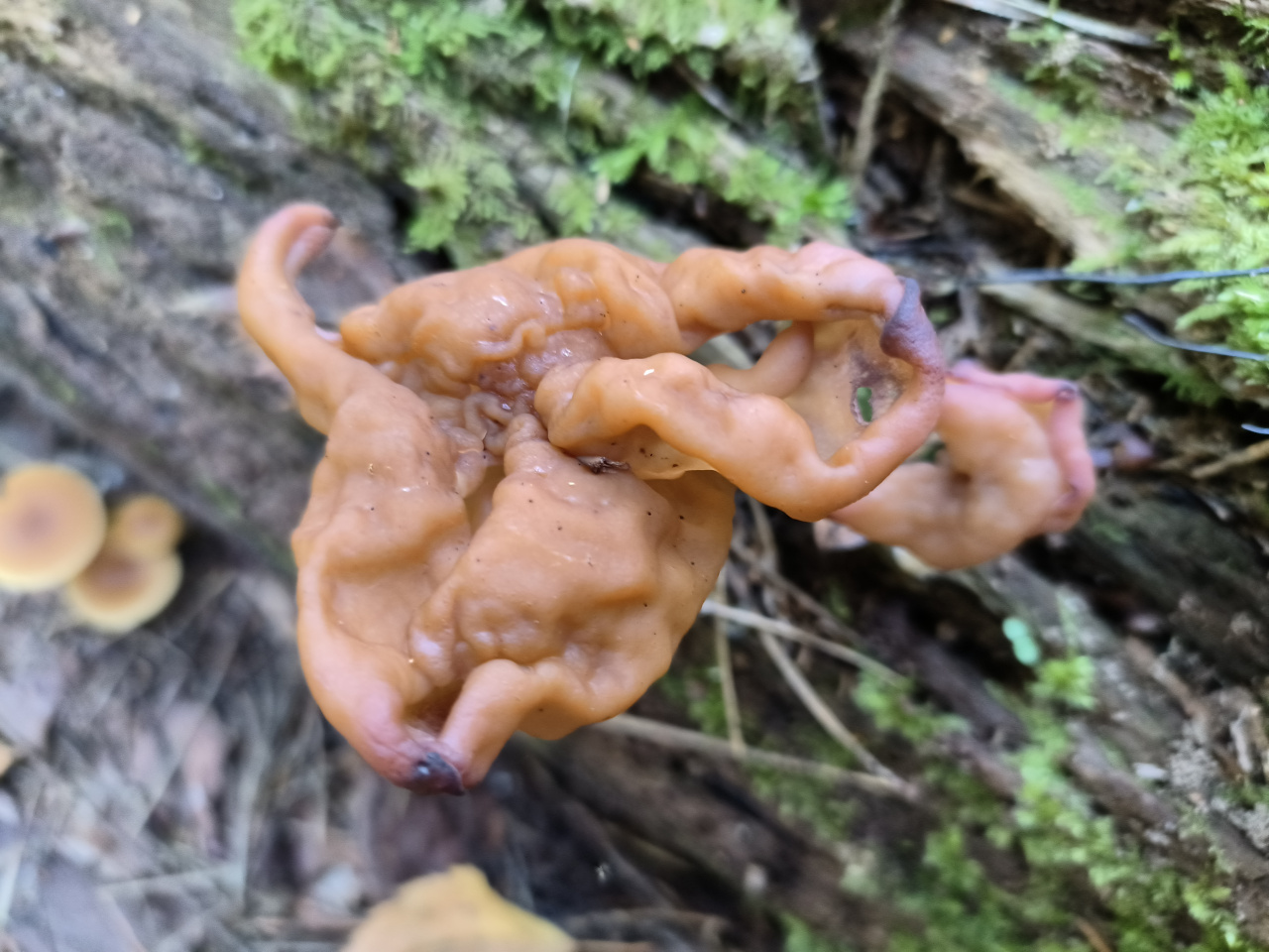 Описание гриба: Подмосковье, смешанный лес с преобладанием хвойных, на трухлявом бревне. Гименофор отсутствует. Запаха не уловил.
