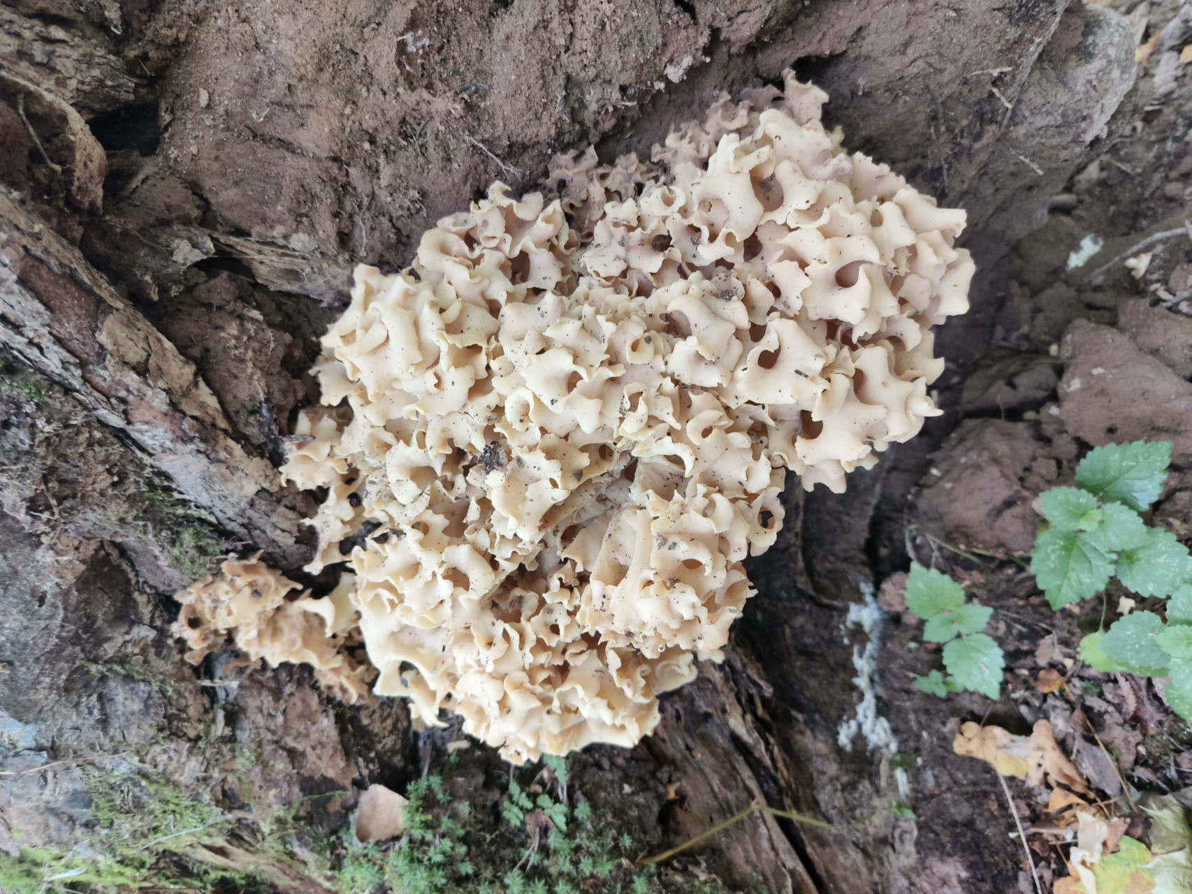 Описание гриба: Рос на поваленном дереве с другой стороны, где корни.