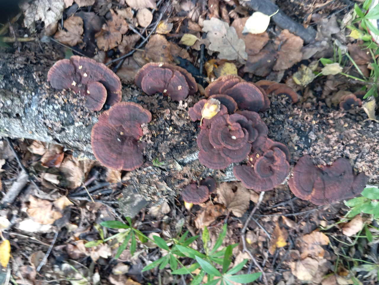 Описание гриба: На трухлявой лежачей берёзе. Башкирия. Почему то решил что трутовик разноцветный, трематес кажется по латыни. А теперь сомневаюсь.